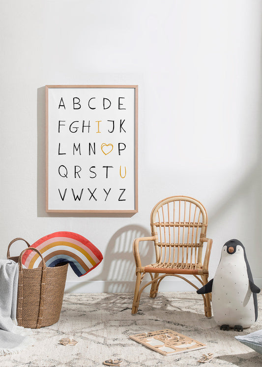 In this category you will find artworks with letters of the alphabet with different motifs and designs. Wall art for both children and adults. Find your initial in this wordsearch puzzle!