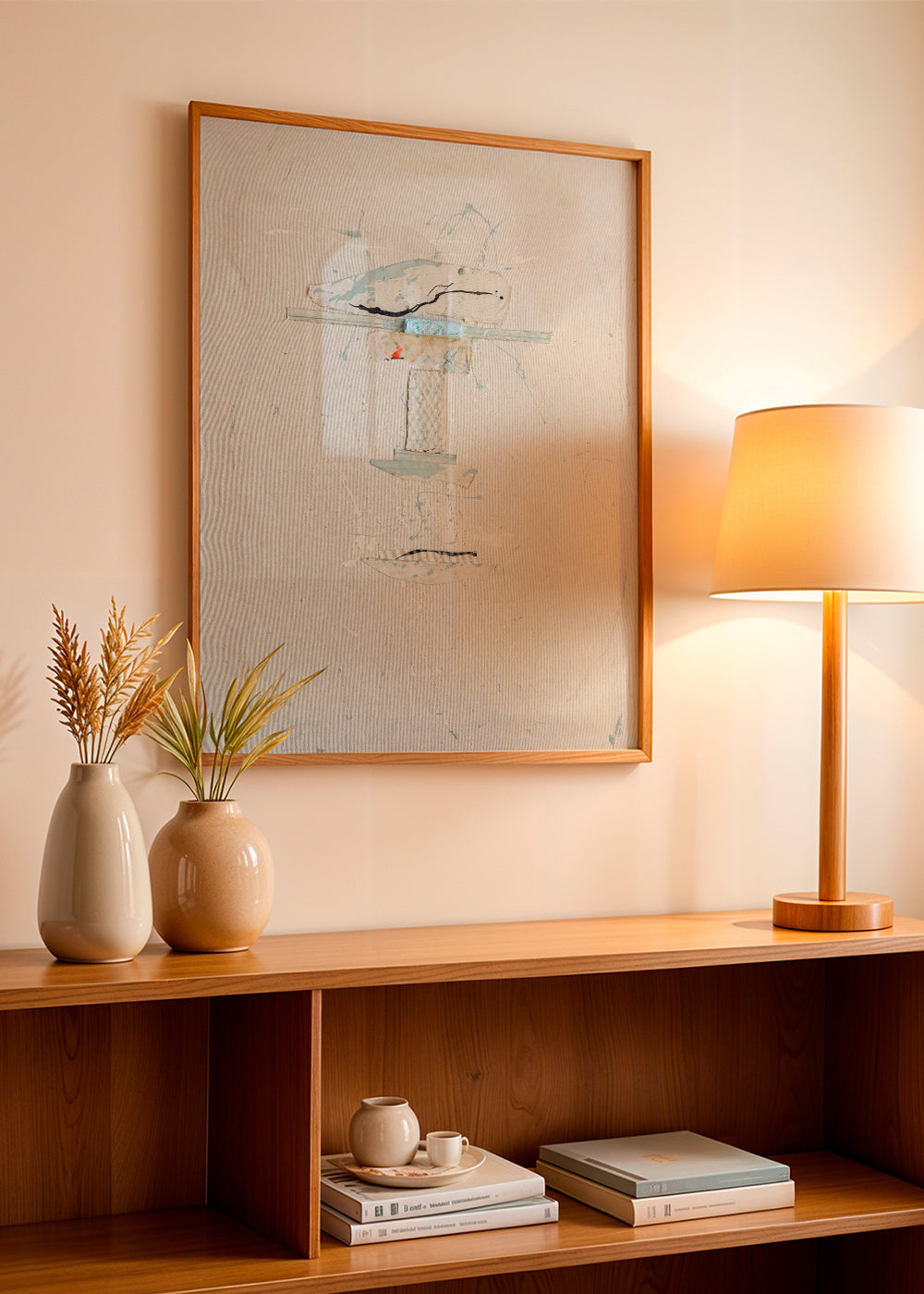 We work with solid wood and aluminium frames. All framed artworks are shipped already assembled and ready to hang. The front protection is made of high-clarity acrylic glass.
