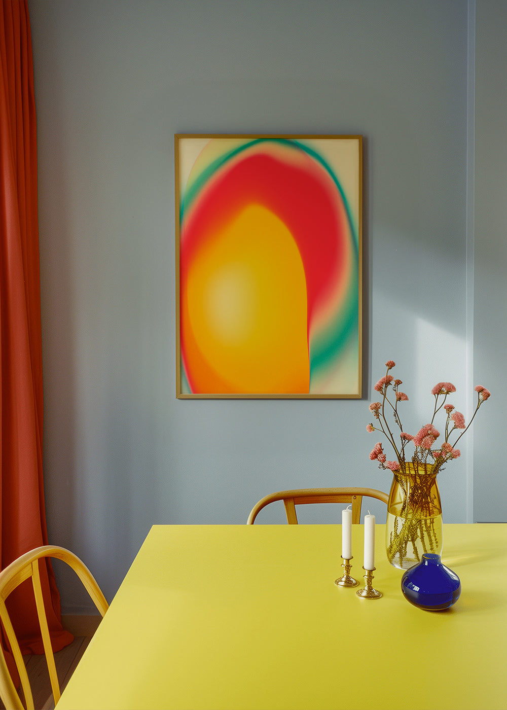 A poster from the abstract wall art and prints collection, by 1x, with tones of yellow, and with vertical layout. It is an abstract artwork that will give your spaces a modern touch. Walls decorated with prints are the ultimate.