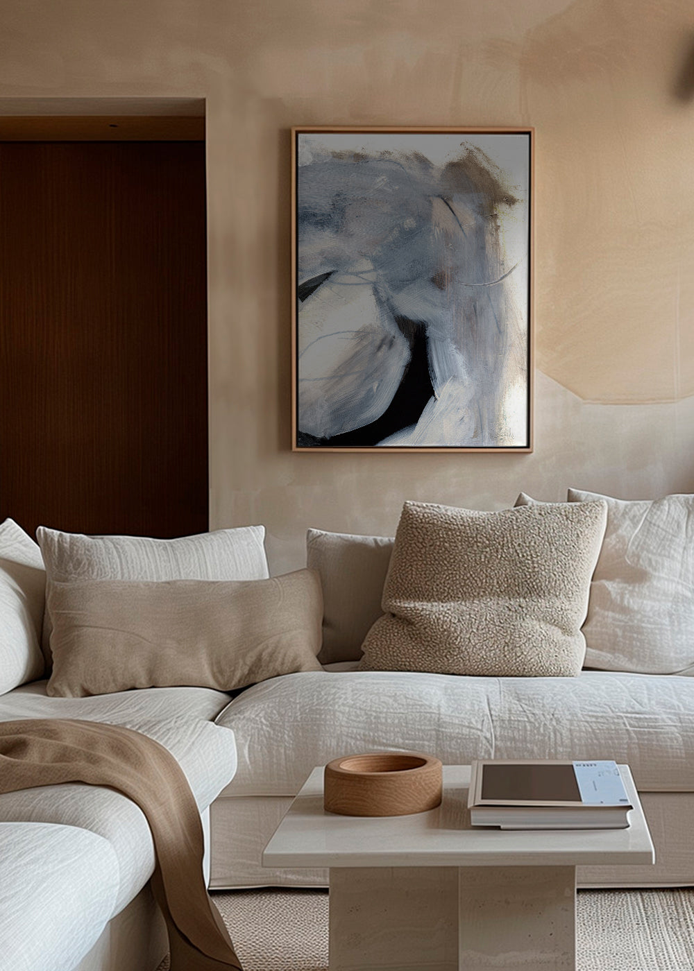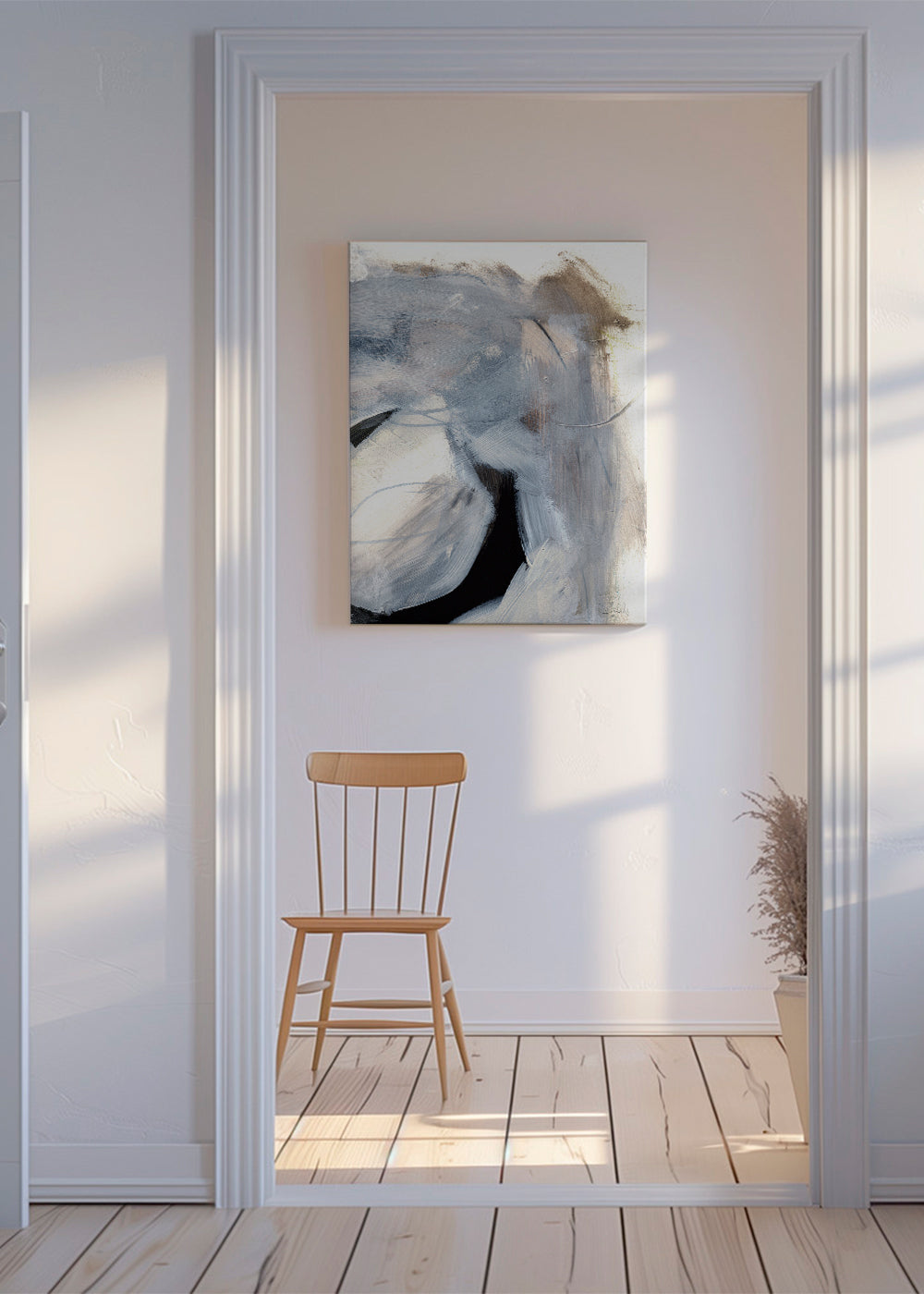 Each canvas is hand-stretched over a wooden frame. The depth is 3 cm for unframed canvases and 4 cm for framed canvases.
