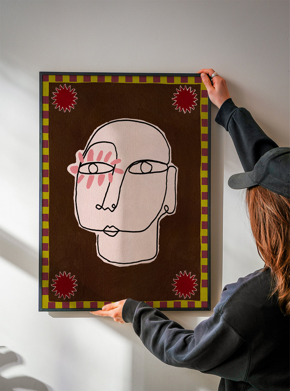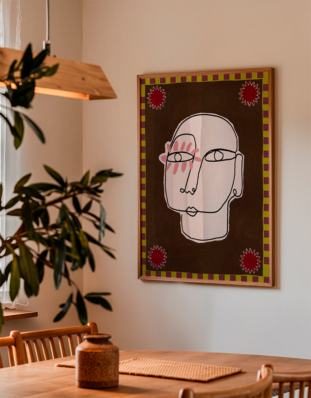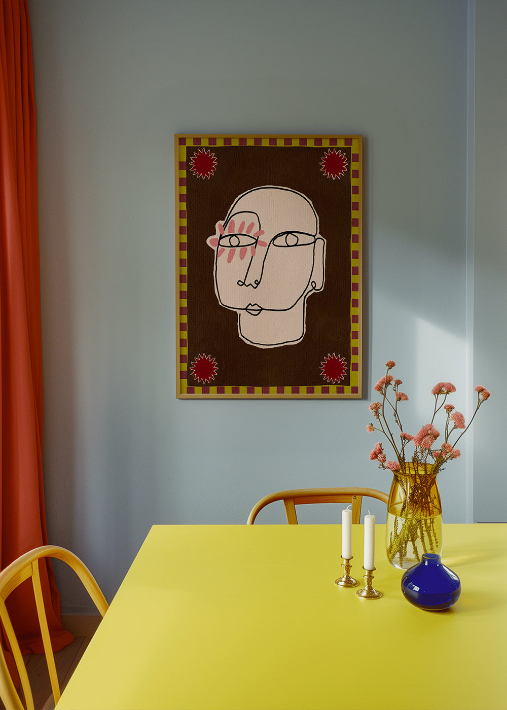 Enchanting drawings. Charming drawing Vision of the artist Shatha Dafai. Rich in browns accents presented in a vertical style. A perfect piece for spaces bursting with art and creativity our drawings are perfect for decorating empty or boring spaces. Elevate your wall decor