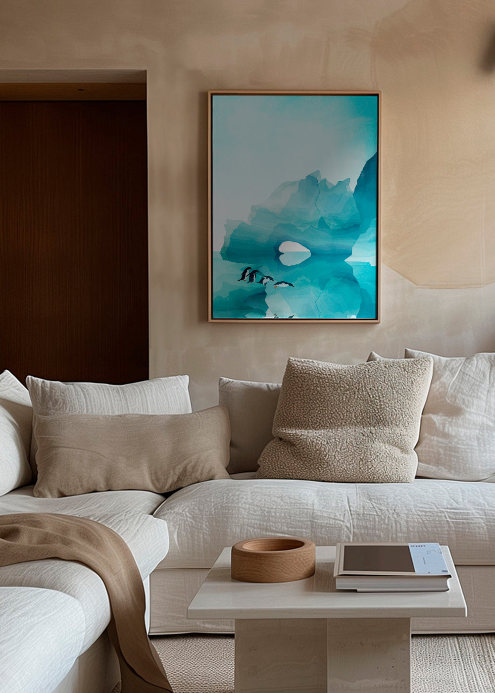We work with solid wood and aluminium frames. All framed artworks are shipped already assembled and ready to hang. The front protection is made of high-clarity acrylic glass.
