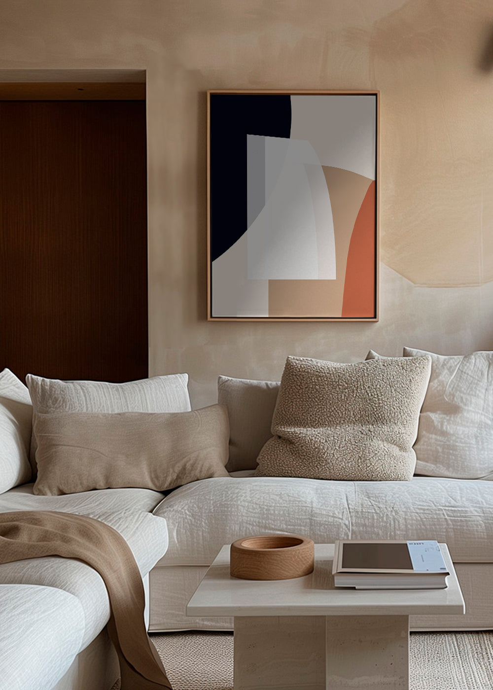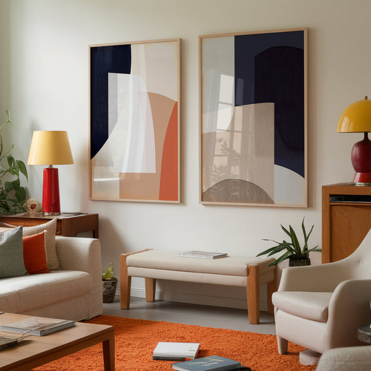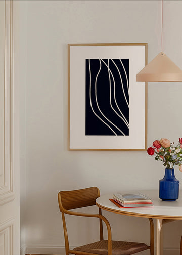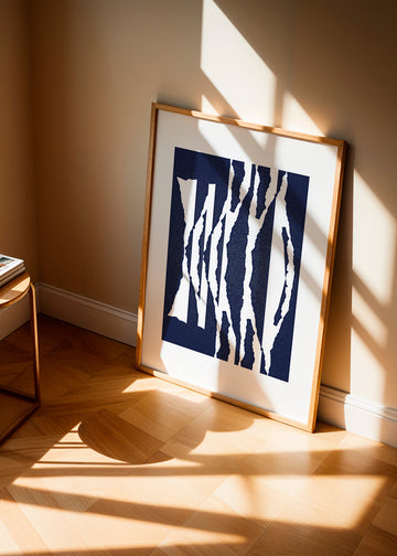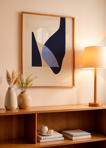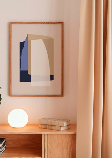 This poster from our geometric wall art and prints category, from the Anna Mainz collection, with blue tones, and with vertical layout. The abstract, geometric shapes help create a casual, creative setting. A new look on your walls can bring a breath of fresh air to all your decor.