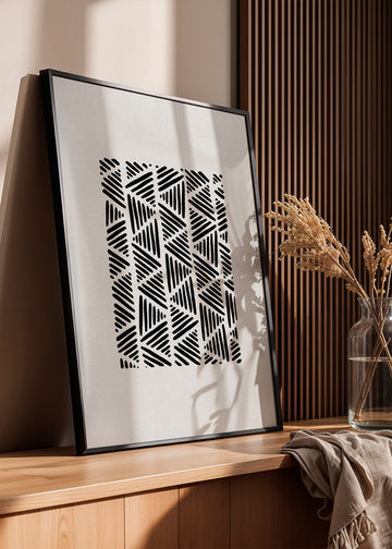 This piece from our brush posters category, an original by Orara Studio, with touches of blue, and facing vertically. Geometric art is an elegant style to decorate the walls of your home with. Create the perfect environment.