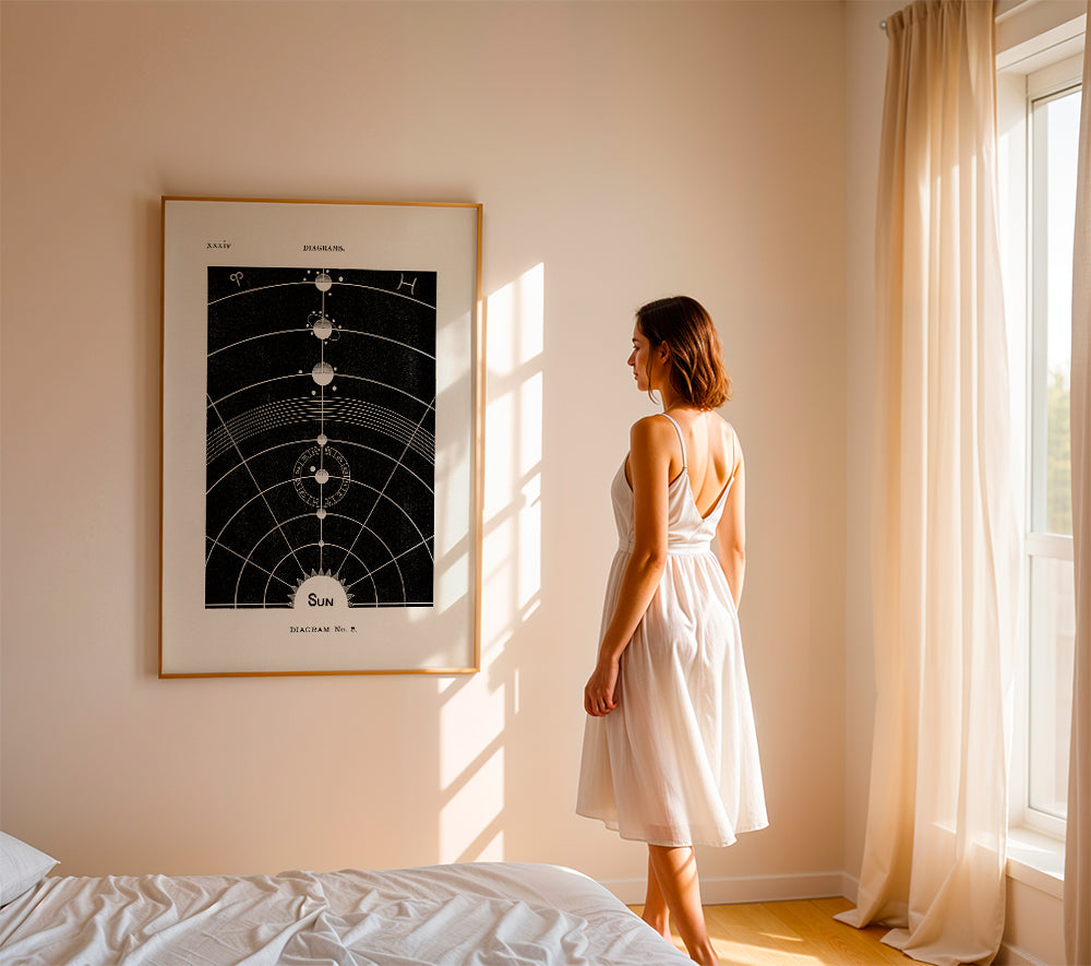 Beautiful print inspired by the collection of space posters, by creative artist 1x, in tones of black, and perfect to hang vertically. A retro poster you can pair with other vintage-style prints for an original touch in the home. Fill your decoration with art.