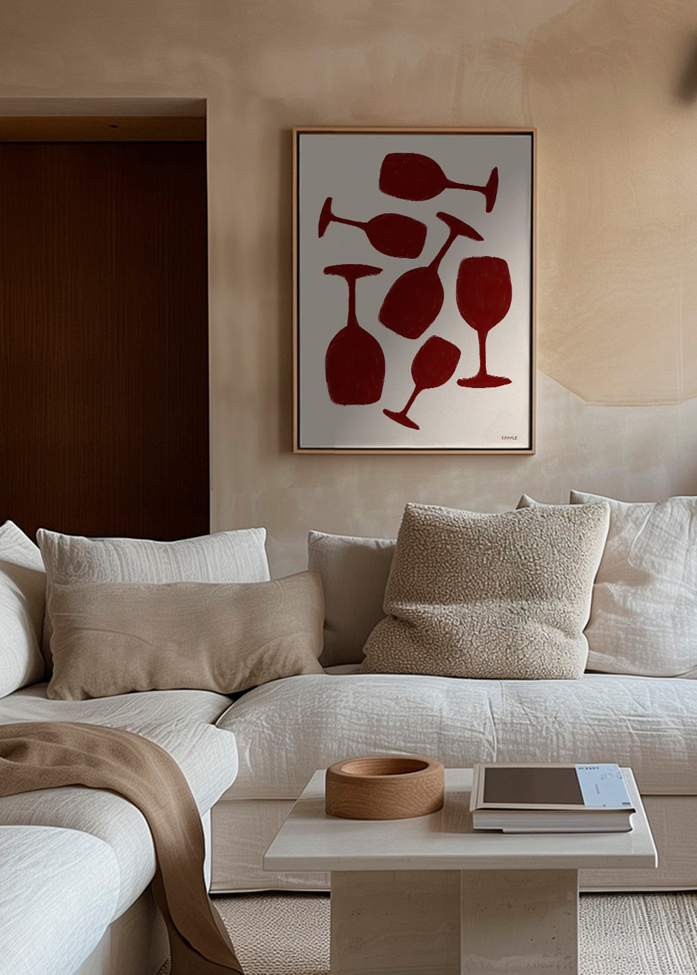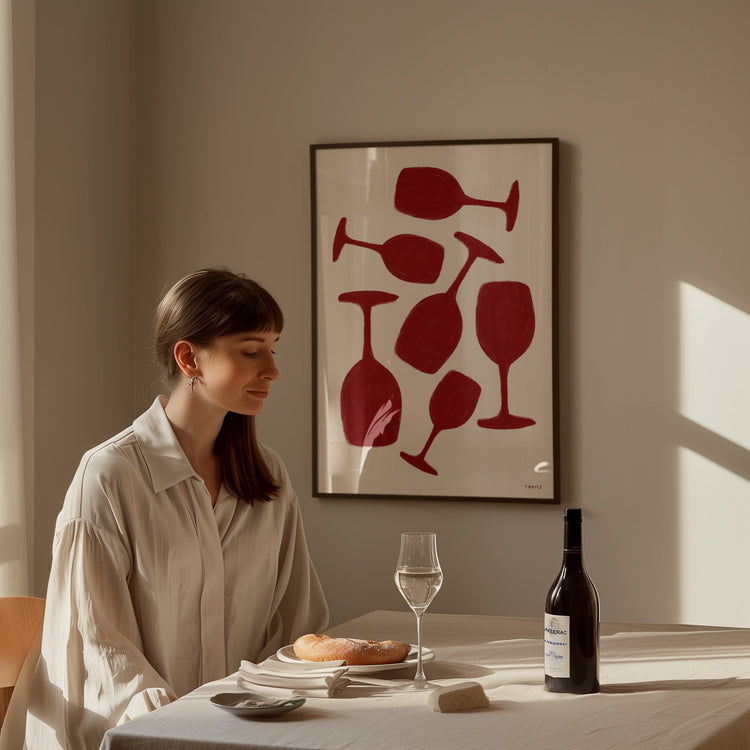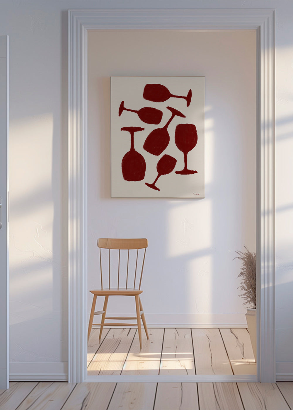 Beautiful poster from the wine wall art series, by 1x, in red shades, and perfect to hang vertically. Drawings are one of the clearest forms of art and this design will leave no one indifferent. Walls full of creativity.