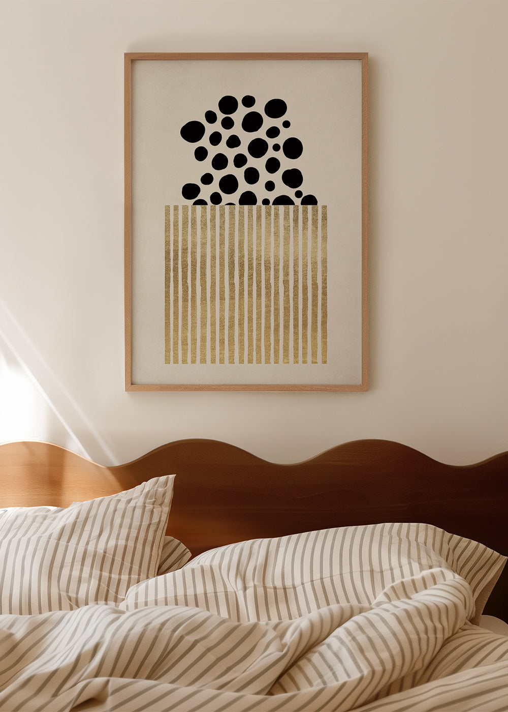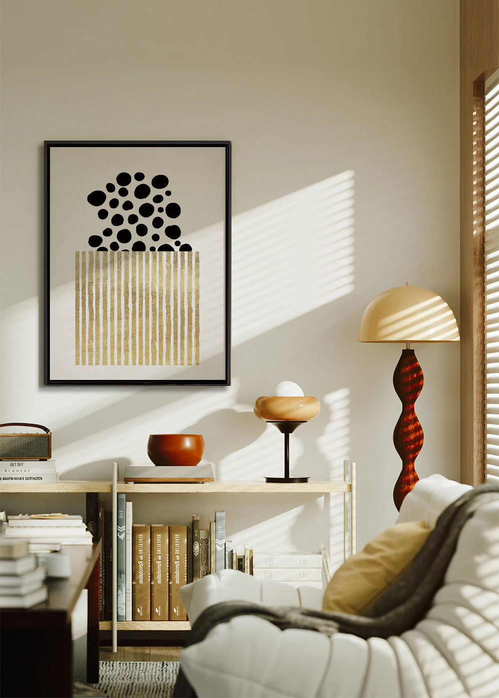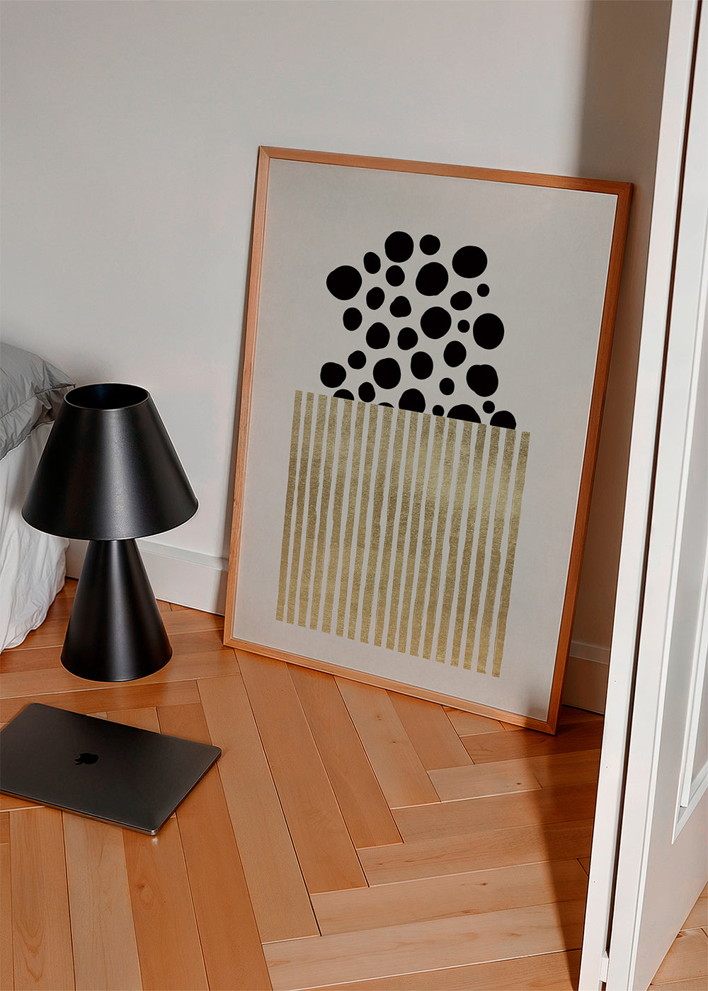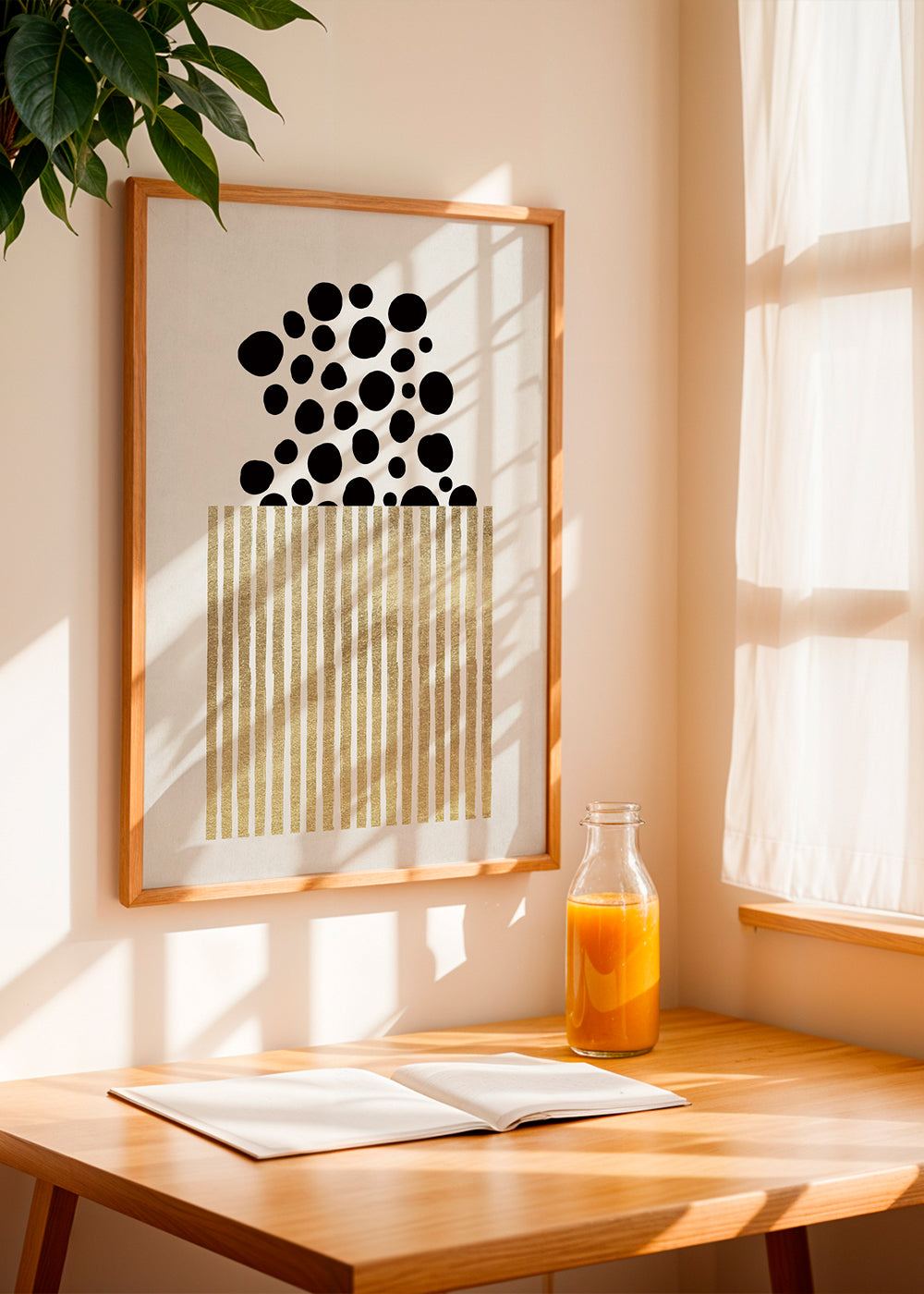 Beautiful piece from our repertoire of food posters, by the artist Kubistika, with gold tones, and perfect to hang vertically. This design is perfect for decorating contemporary spaces. Combine it with other abstract pieces for cutting-edge decoration. A new look on your walls can bring a breath of fresh air to all your decor.