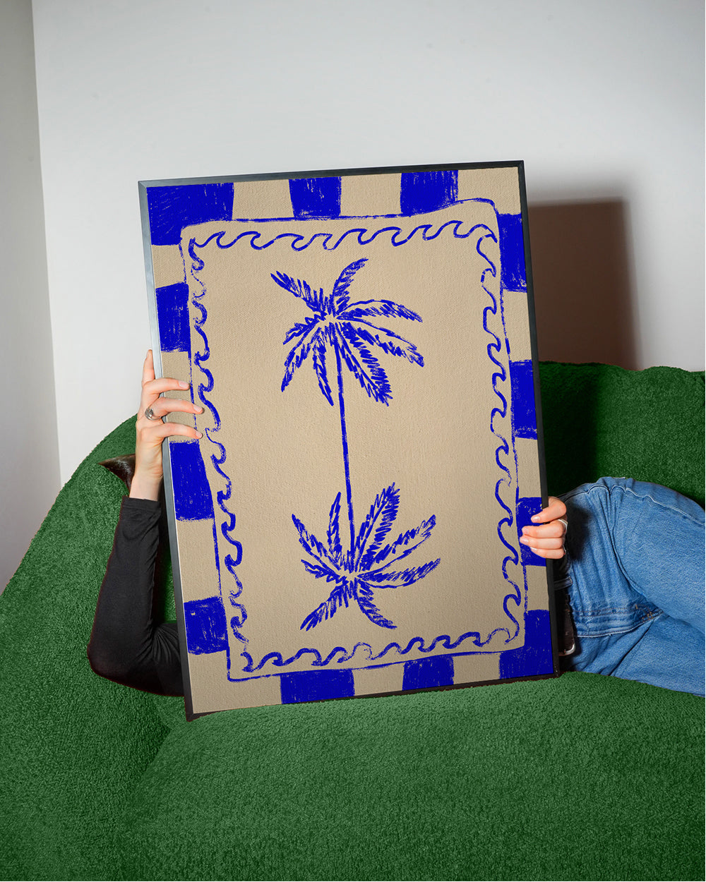 A poster from the trees wall art collection, from the collection of the artist Shatha Dafai, in tones of blue, and in vertical position. Illustrated posters are perfect for pairing with minimalist and abstract art. Give your home a new look.