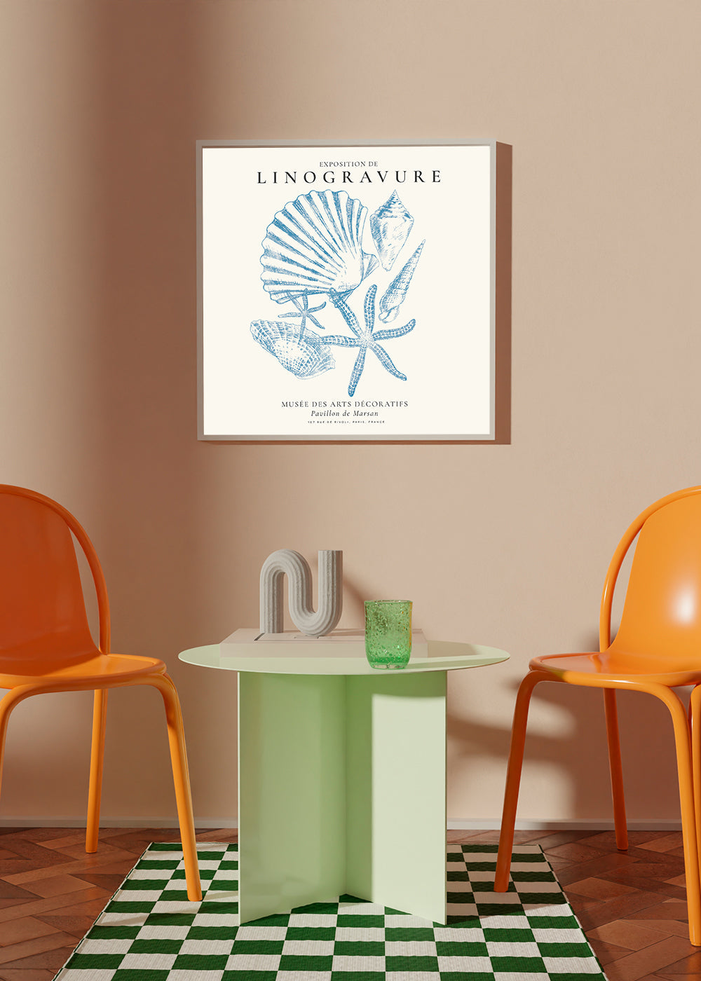Scandinavian wall art Exposition de linogravure, Sealife (la vie marine) - SQUARE