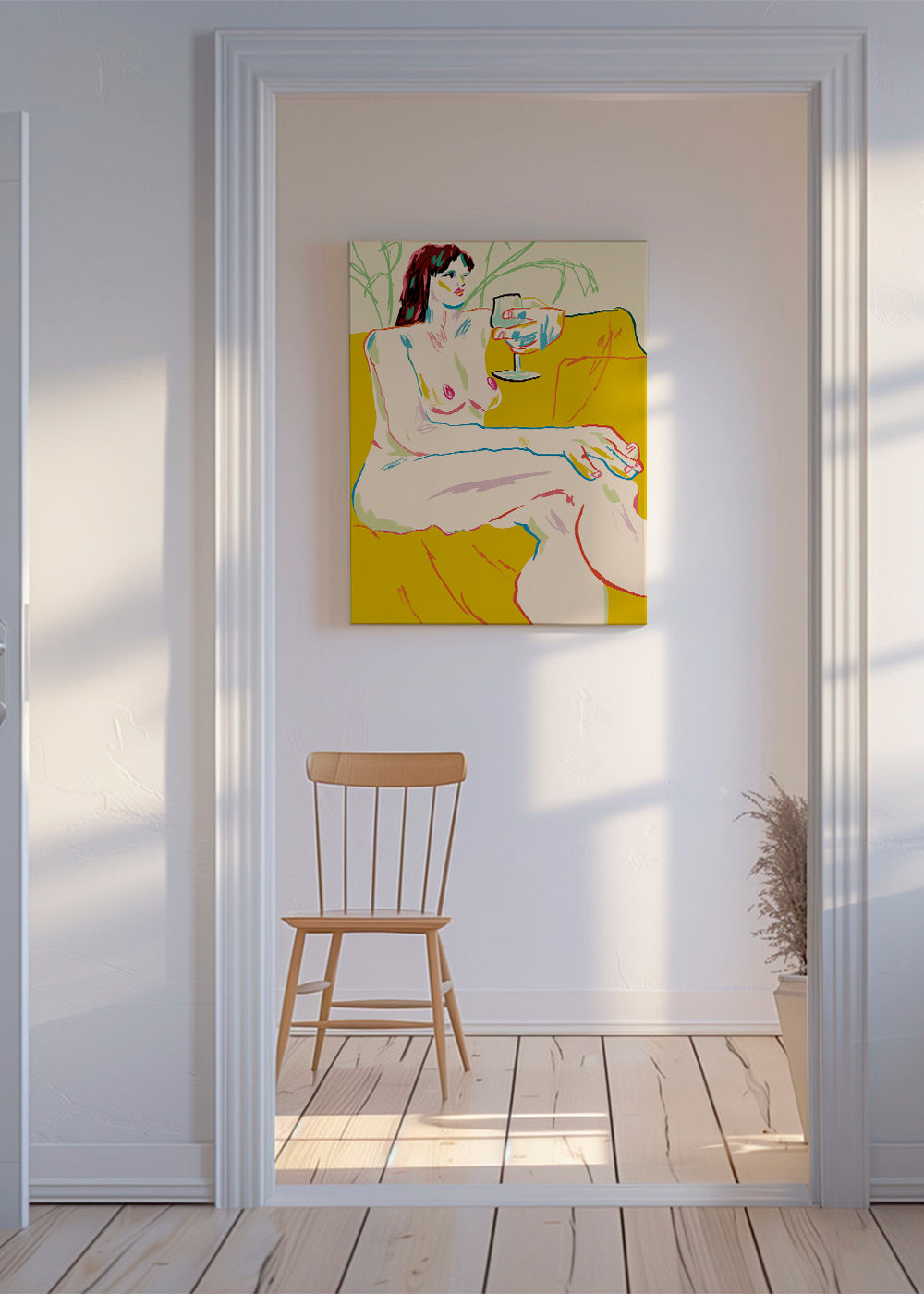 A design from our repertoire of girls wall art, from the collection of the artist 1x, with tones of yellow, and vertical layout. The drawing is simple and clean, so you can pair it with other illustrations for an artistic composition. Walls decorated with prints are the ultimate.