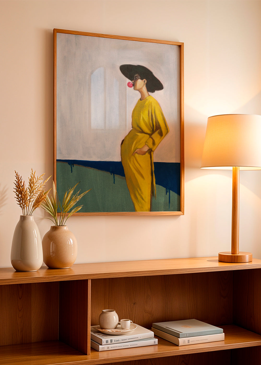 We work with solid wood and aluminium frames. All framed artworks are shipped already assembled and ready to hang. The front protection is made of high-clarity acrylic glass.
