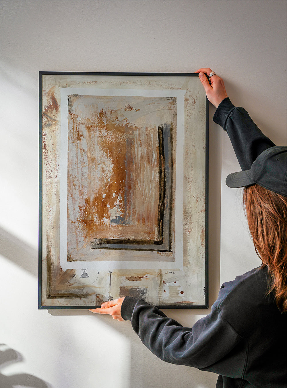 To hang our frames, you need to slightly separate the black or silver metal hanger from the back. Once separated, you can hang it from the hanger that you have chosen depending on the material of your wall.