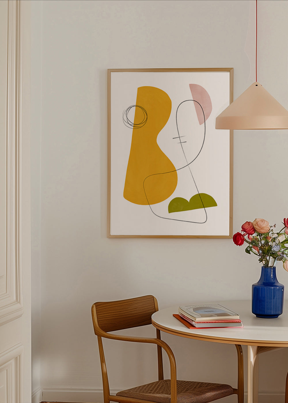 This poster from our geometric wall art and prints series, by creative artist Nouveau Prints, with yellow, and to hang in vertical position. This piece with abstract shapes is perfect for pairing with other abstract art and geometric prints. The difference is in the details.