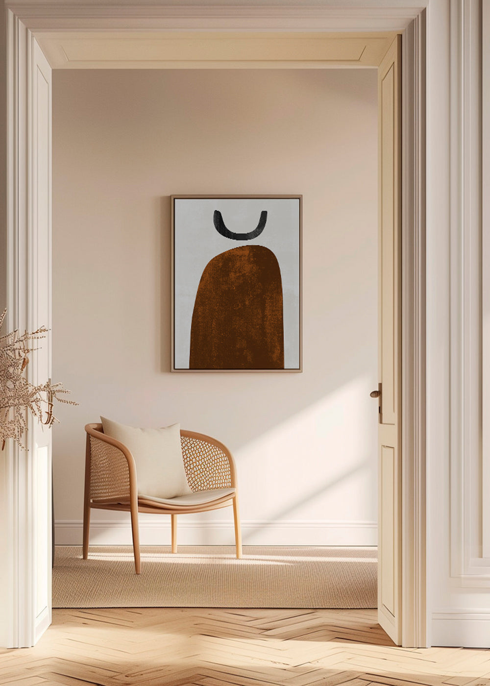 A print in the style of our geometric wall art and prints, by Nouveau Prints, with touches of blue, and to hang in vertical position. Geometric art is an elegant style to decorate the walls of your home with. A home expresses itself through its walls.