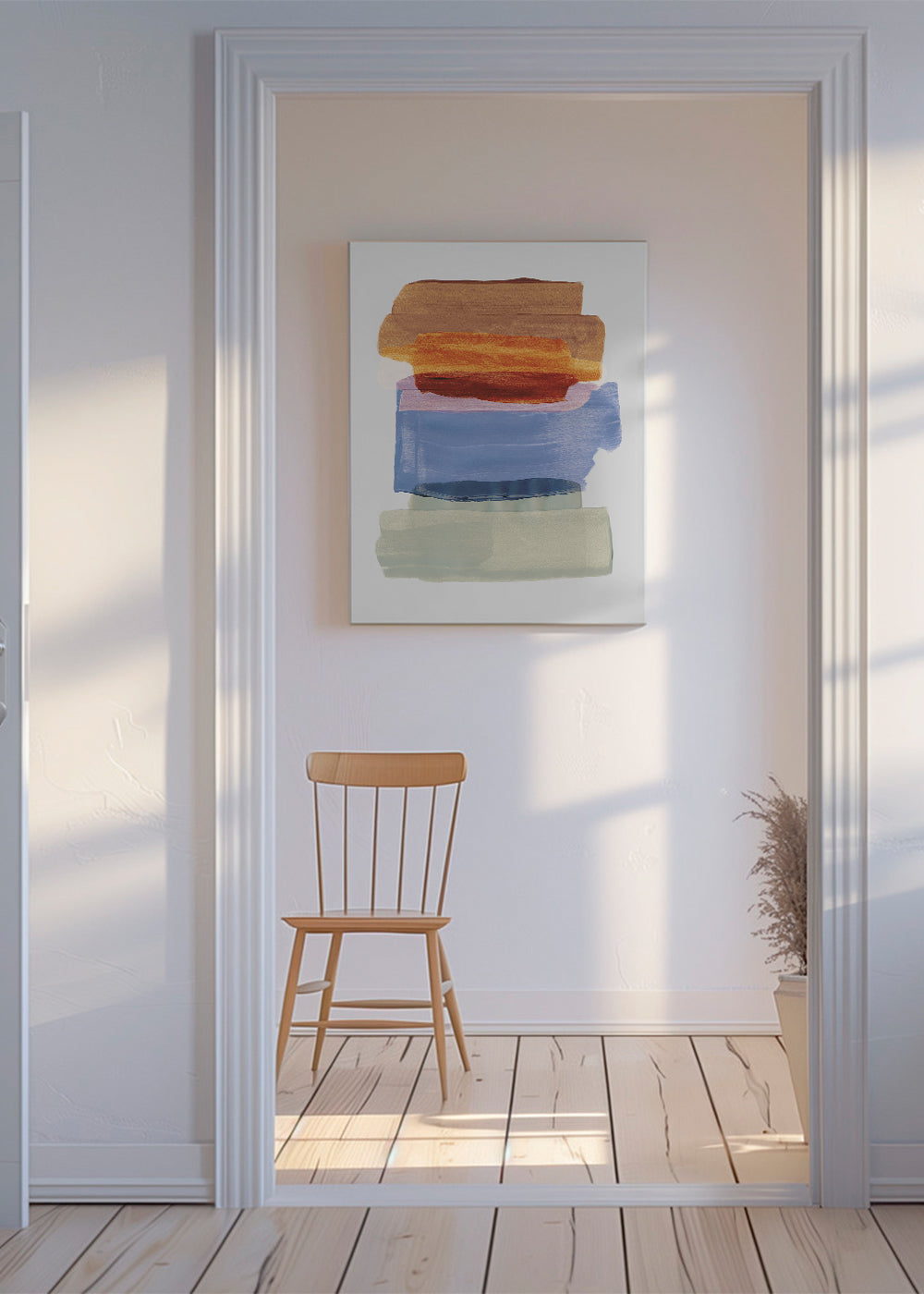 Each canvas is hand-stretched over a wooden frame. The depth is 3 cm for unframed canvases and 4 cm for framed canvases.