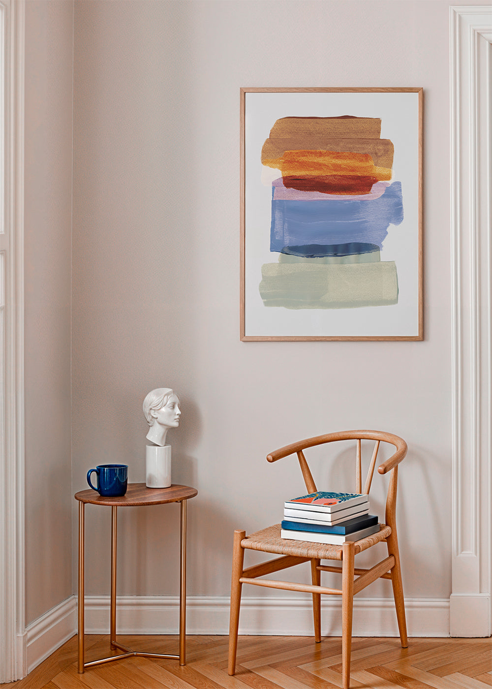 This print from the brush posters category, from the collection of the artist Mareike Bohmer, with tones of blue, and with vertical layout. Abstract prints and paintings make spaces more unique. Elegant walls for chic homes.