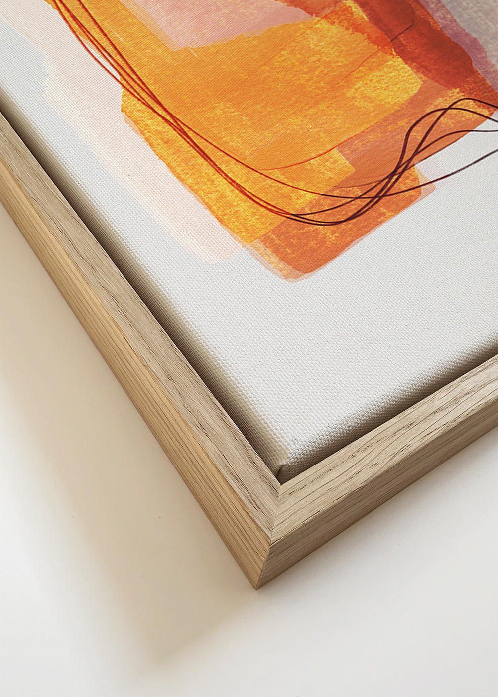 Each canvas is hand-stretched over a wooden frame. The depth is 3 cm for unframed canvases and 4 cm for framed canvases.