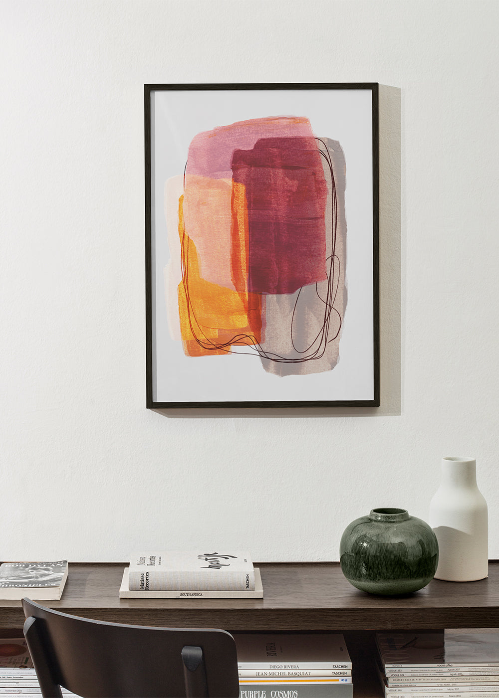 This poster from the brush posters collection, an original by Mareike Bohmer, with pink tones, and perfect to hang vertically. Decorating with abstract prints is a great option if you want a unique home. Create a one-of-a-kind spot.