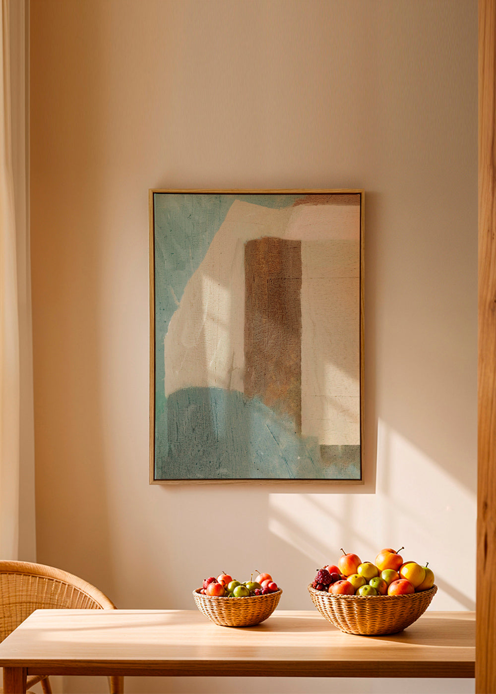 Each canvas is hand-stretched over a wooden frame. The depth is 3 cm for unframed canvases and 4 cm for framed canvases.