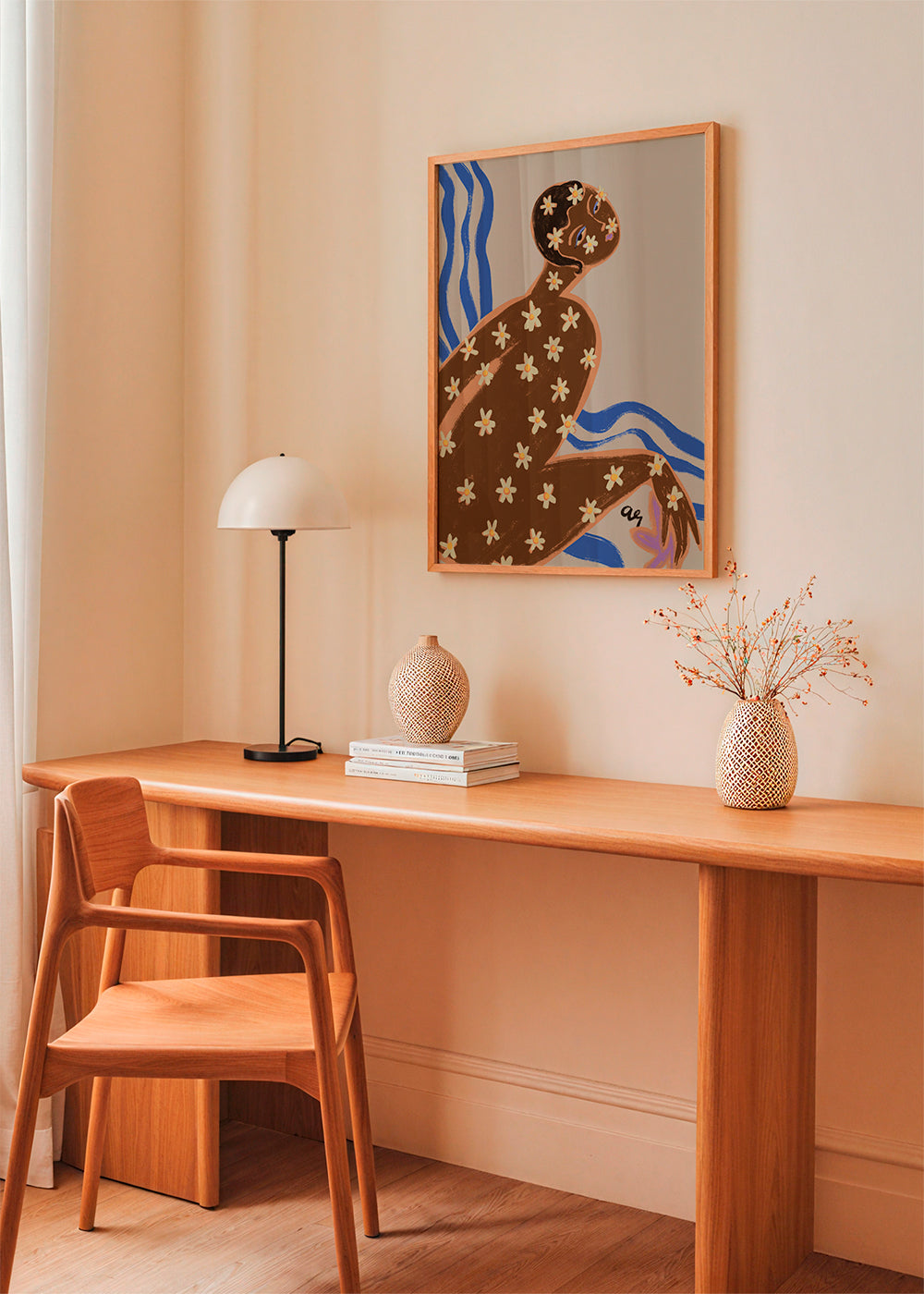 A poster from the girls wall art collection, from the 1x collection, with tones of brown, and in vertical position. A perfect piece for spaces bursting with art and creativity. Our drawings are perfect for decorating empty or boring spaces. Give your rooms a fresh look with art.