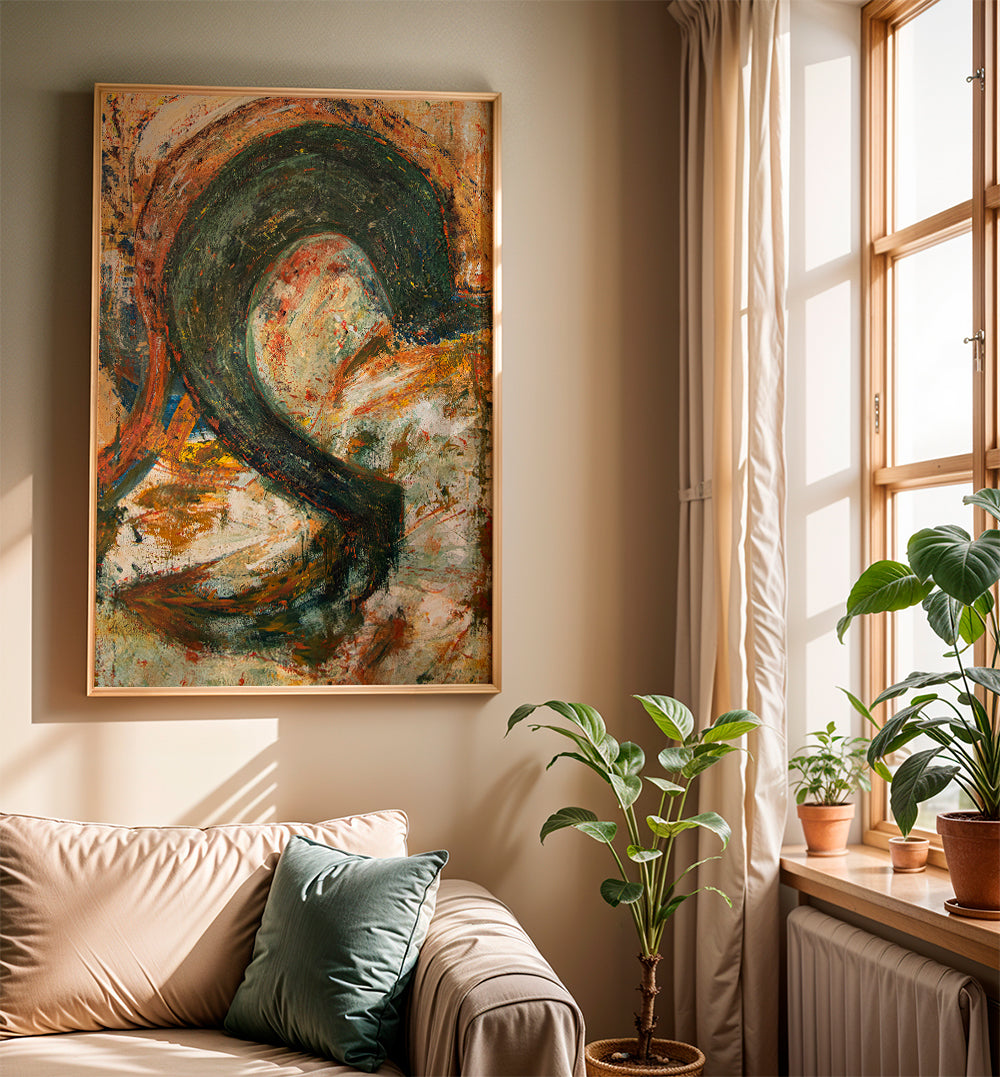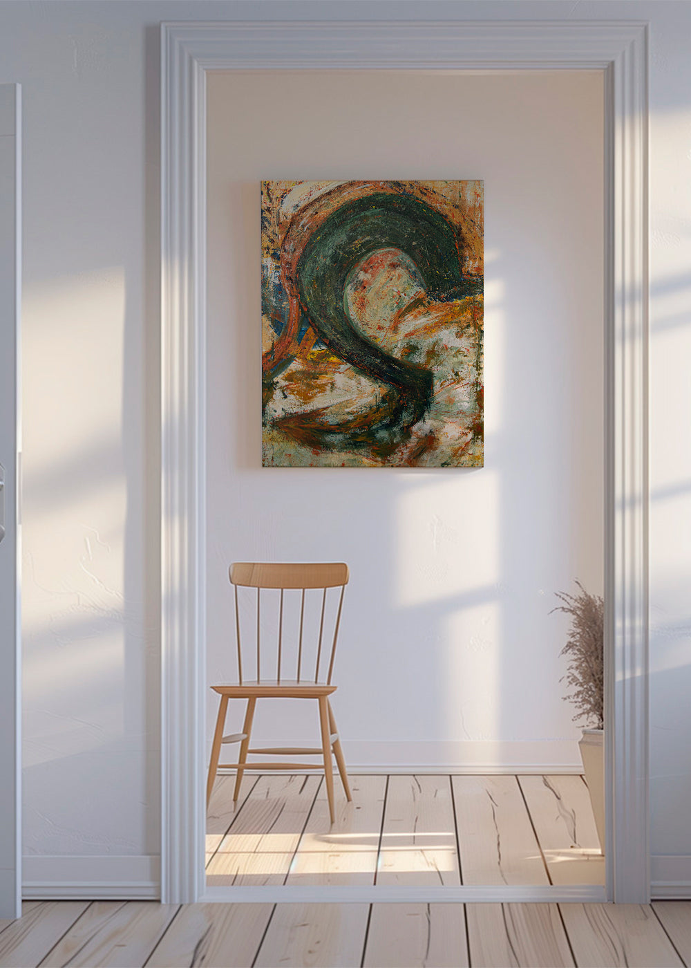 Each canvas is hand-stretched over a wooden frame. The depth is 3 cm for unframed canvases and 4 cm for framed canvases.