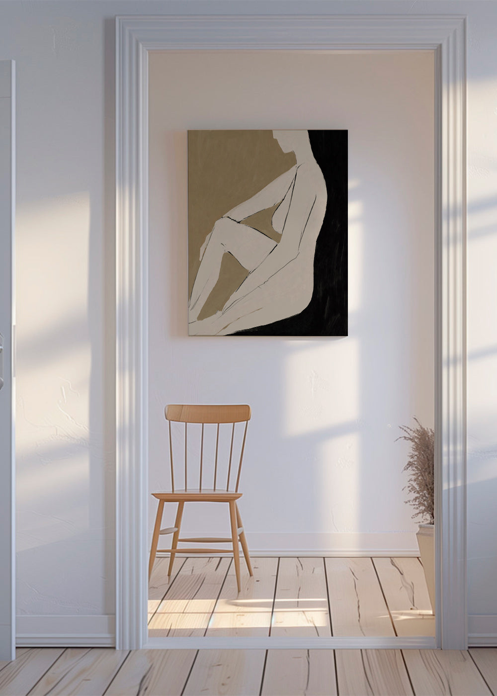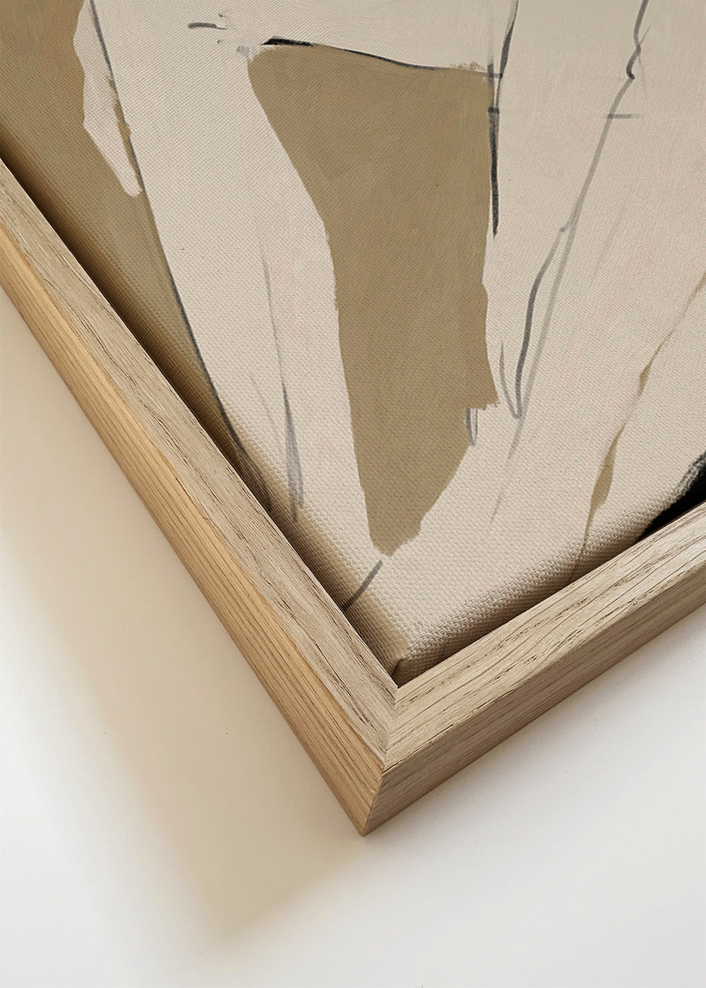 Each canvas is hand-stretched over a wooden frame. The depth is 3 cm for unframed canvases and 4 cm for framed canvases.