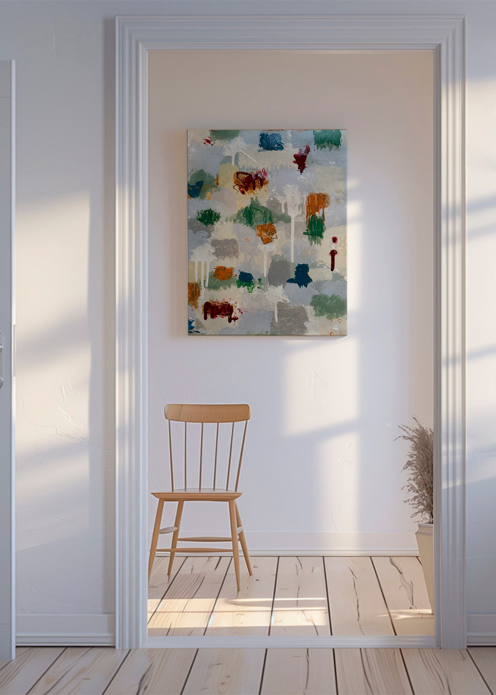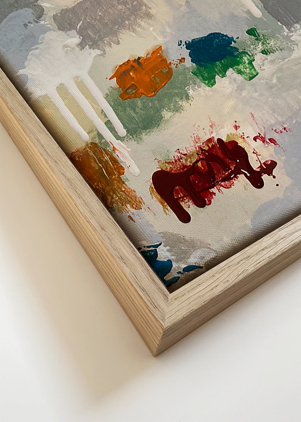 Each canvas is hand-stretched over a wooden frame. The depth is 3 cm for unframed canvases and 4 cm for framed canvases.