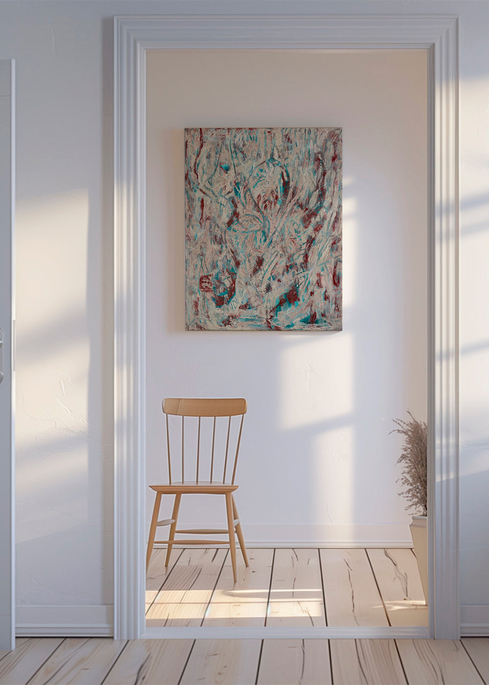 Each canvas is hand-stretched over a wooden frame. The depth is 3 cm for unframed canvases and 4 cm for framed canvases.
