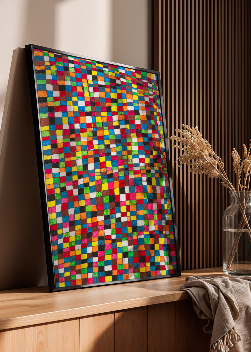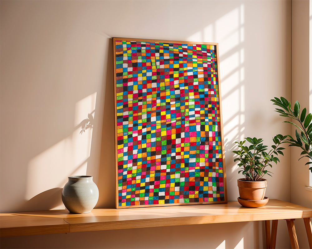 A print from our selection of geometric wall art and prints, created by Fundació Setba, with tones of multicolor, and facing vertically. Geometric art is an elegant style to decorate the walls of your home with. Fill your decoration with art.