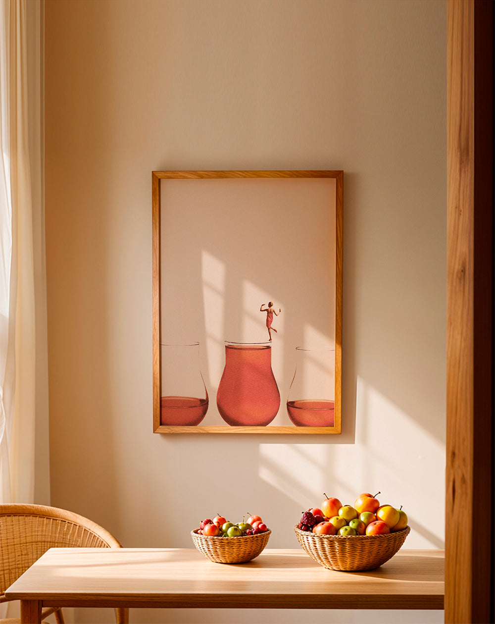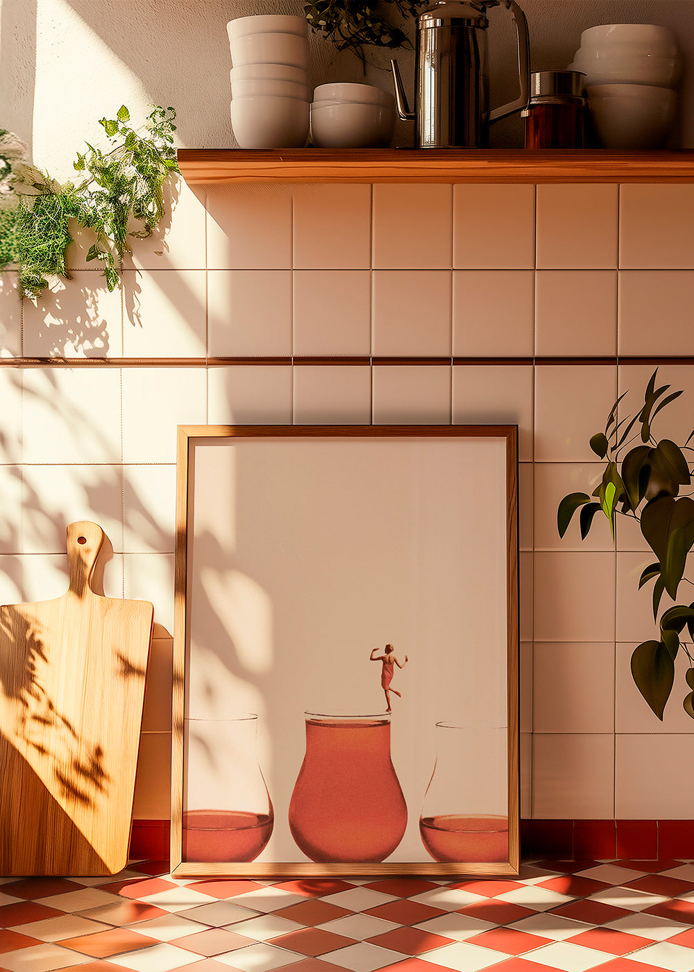 Beautiful piece from the vintage wall art category, made by Maarten Leon, with red, and to hang in vertical position. A retro poster you can pair with other vintage-style prints for an original touch in the home. It's always a good time to freshen up your home.