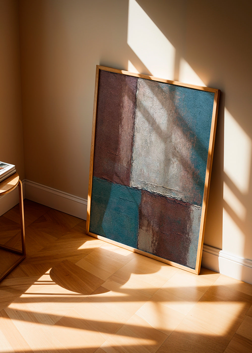 Each canvas is hand-stretched over a wooden frame. The depth is 3 cm for unframed canvases and 4 cm for framed canvases.