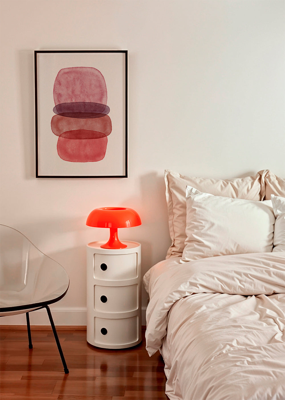 Beautiful poster from our geometric wall art and prints series, by Nouveau Prints, with red tones, and with vertical layout. The abstract, geometric shapes help create a casual, creative setting. Create the perfect wall decoration.