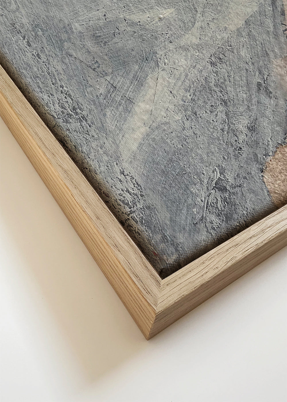 Each canvas is hand-stretched over a wooden frame. The depth is 3 cm for unframed canvases and 4 cm for framed canvases.