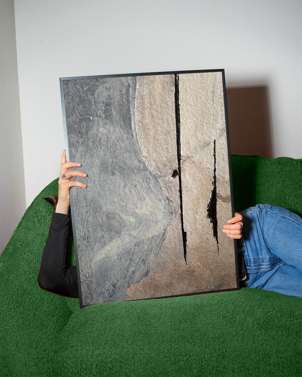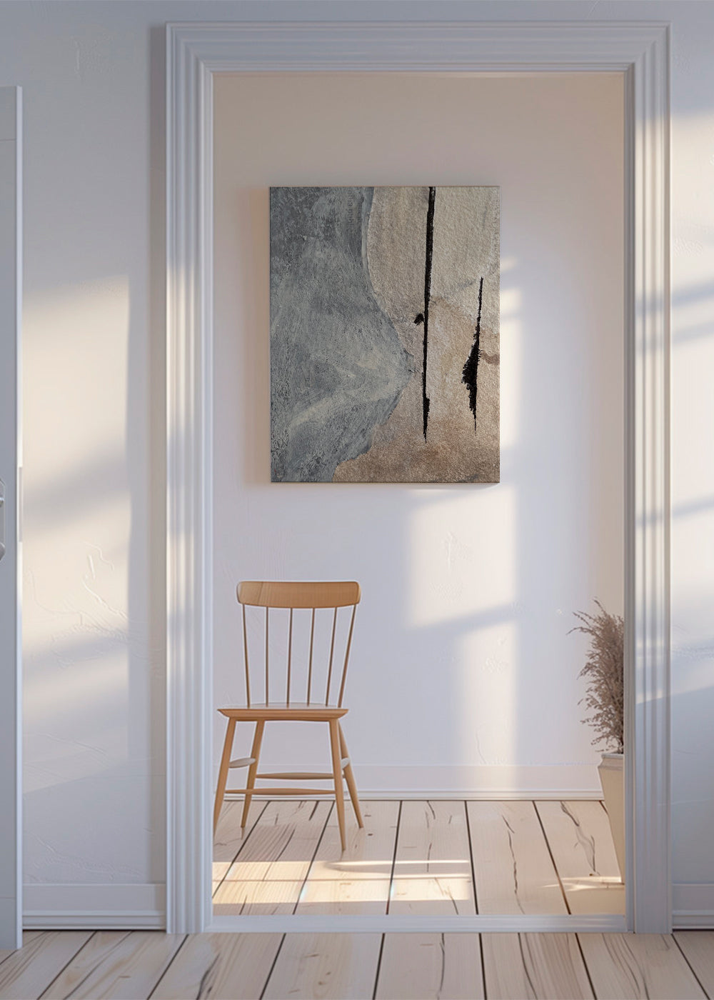 This piece from our repertoire of abstract wall art and prints, created by Elena Camacho Art, with tones of grey, and to hang in vertical position. It is an abstract artwork that will give your spaces a modern touch. The final touch for your home decor.