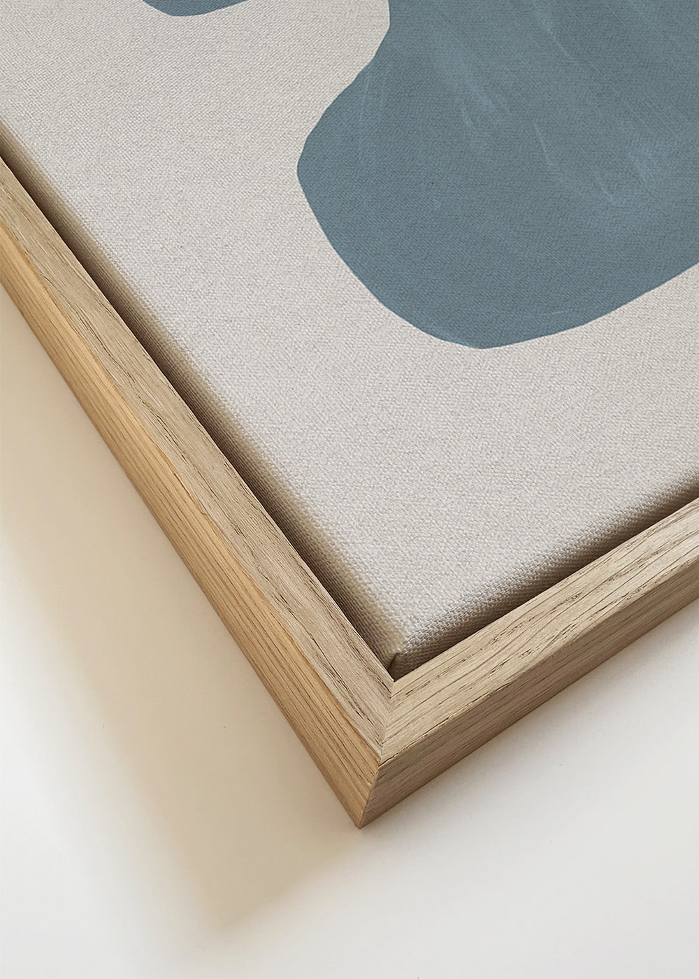 Each canvas is hand-stretched over a wooden frame. The depth is 3 cm for unframed canvases and 4 cm for framed canvases.