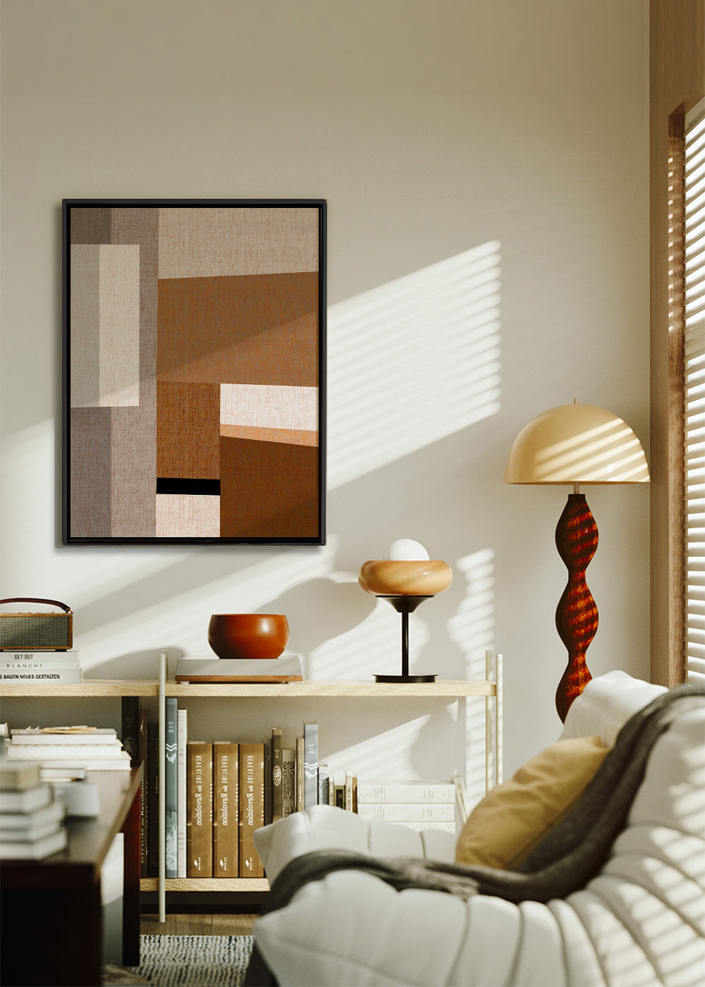 Beautiful print from our geometric wall art and prints series, made by 1x, in brown shades, and with vertical layout. The abstract, geometric shapes help create a casual, creative setting. Pure art and design.