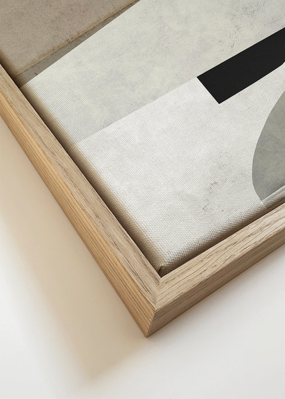 The wooden frames up to 20x28 in (included) have a width of 0.6 in and a depth of 1.2 in, while in the larger ones the width is 0.8 in and a depth of 1.2 in.