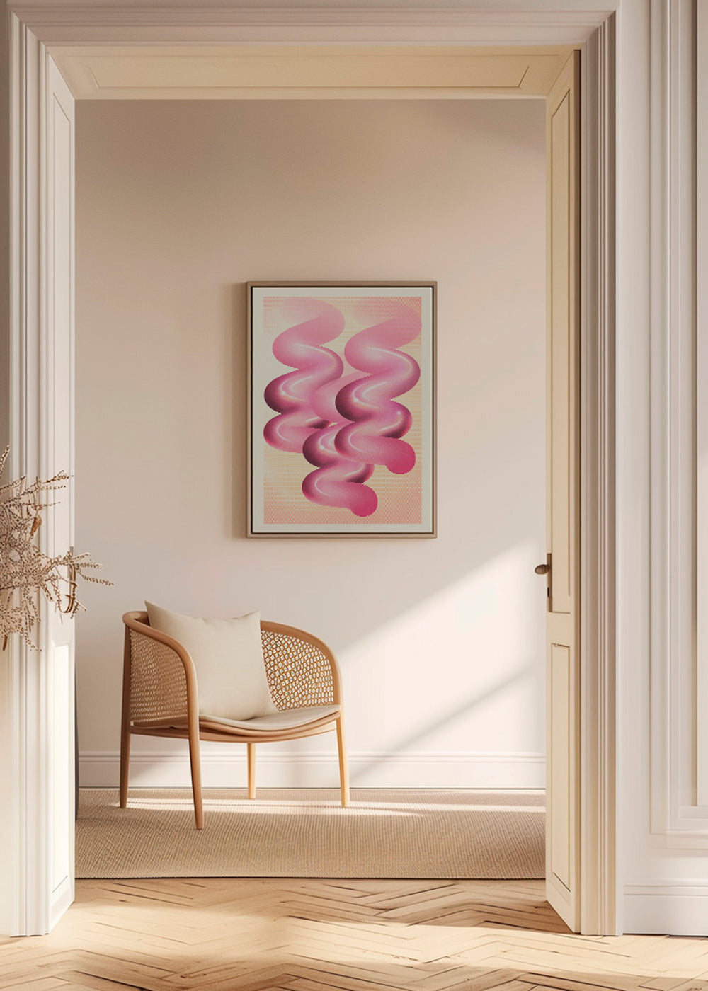 This poster from the abstract wall art and prints series, from the collection of the artist 1x, with touches of purple, and to hang in vertical position. It is an abstract artwork that will give your spaces a modern touch. Build a home full of design and creativity.