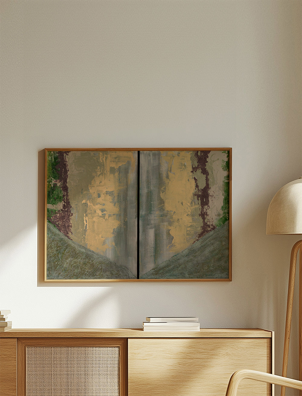 A print from our abstract wall art and prints category, by Elena Camacho Art, with tones of green, and in horizontal position. Abstract art awakens our minds and makes us reflect on the meaning of the pieces. The perfect combination of originality and design.