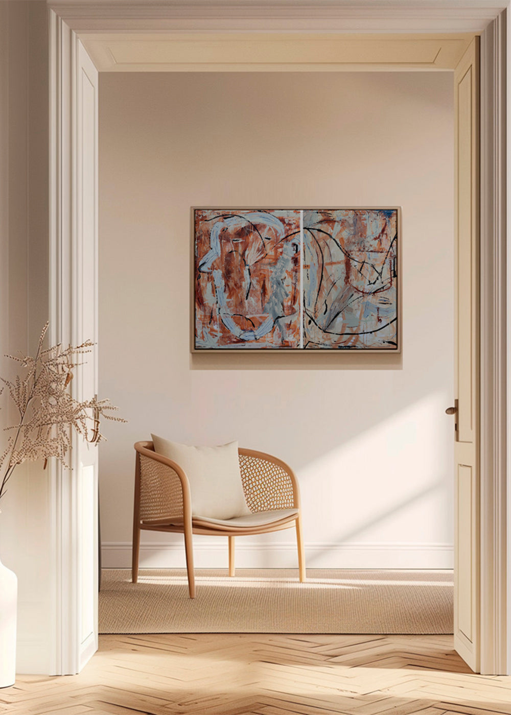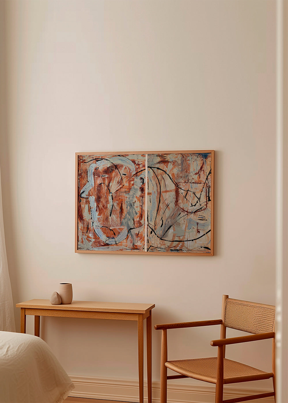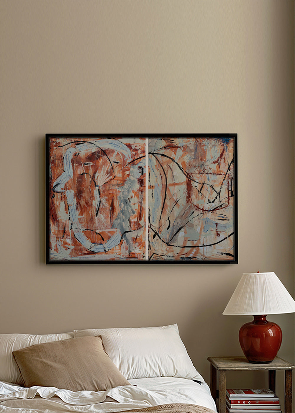 Each canvas is hand-stretched over a wooden frame. The depth is 3 cm for unframed canvases and 4 cm for framed canvases.