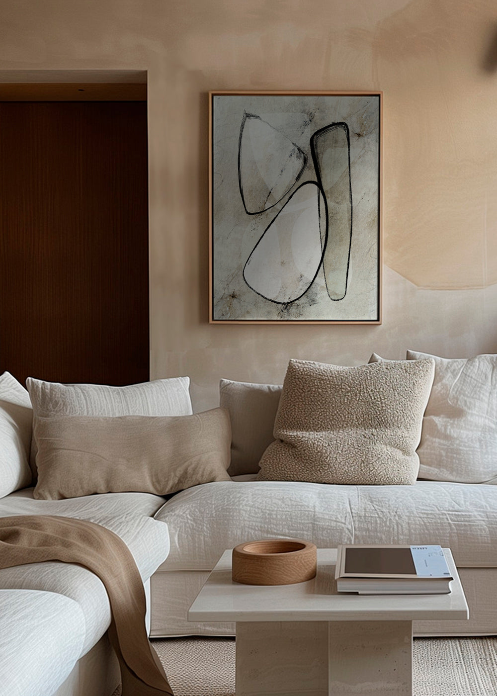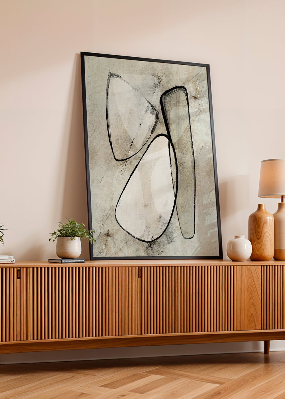 Beautiful poster inspired by the collection of geometric wall art and prints, by 1x, with grey tones, and vertical layout. The abstract, geometric shapes help create a casual, creative setting. Give your home a new look.