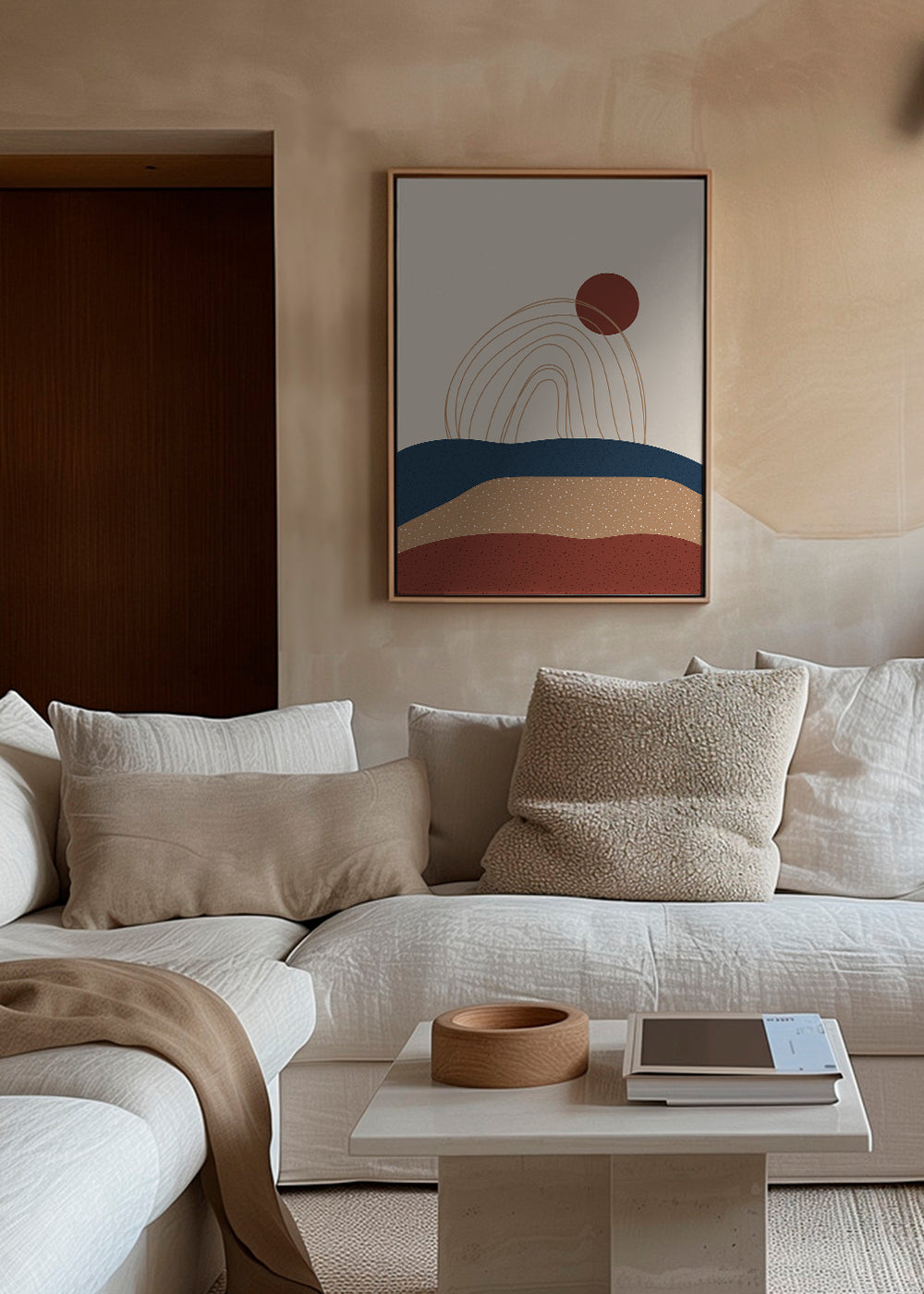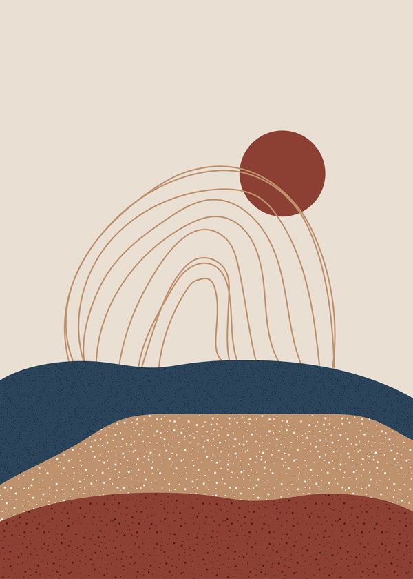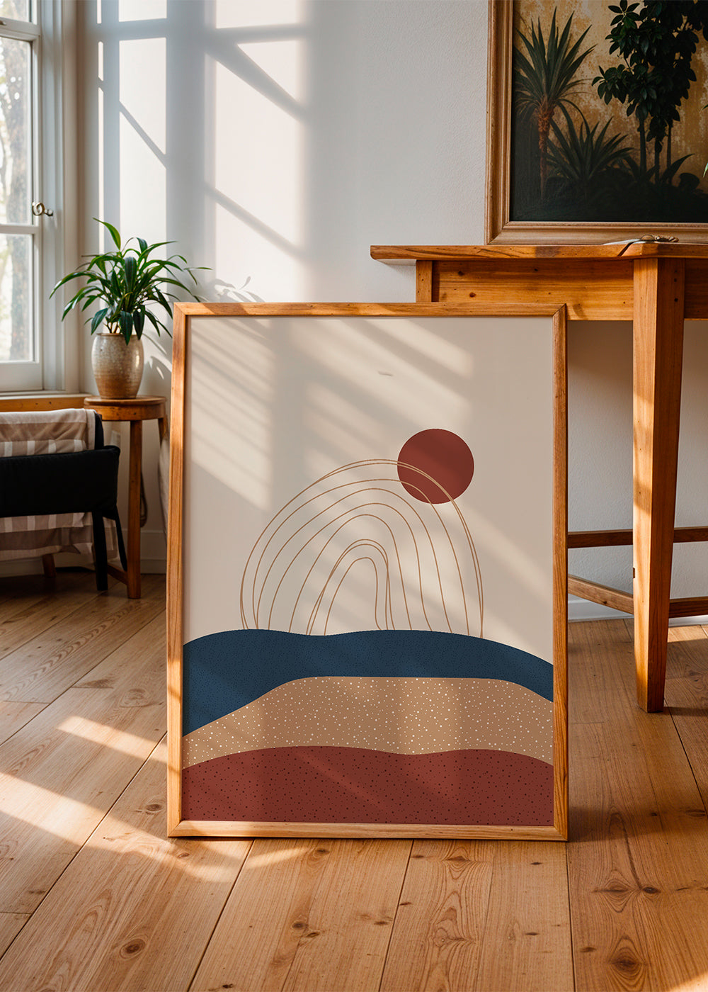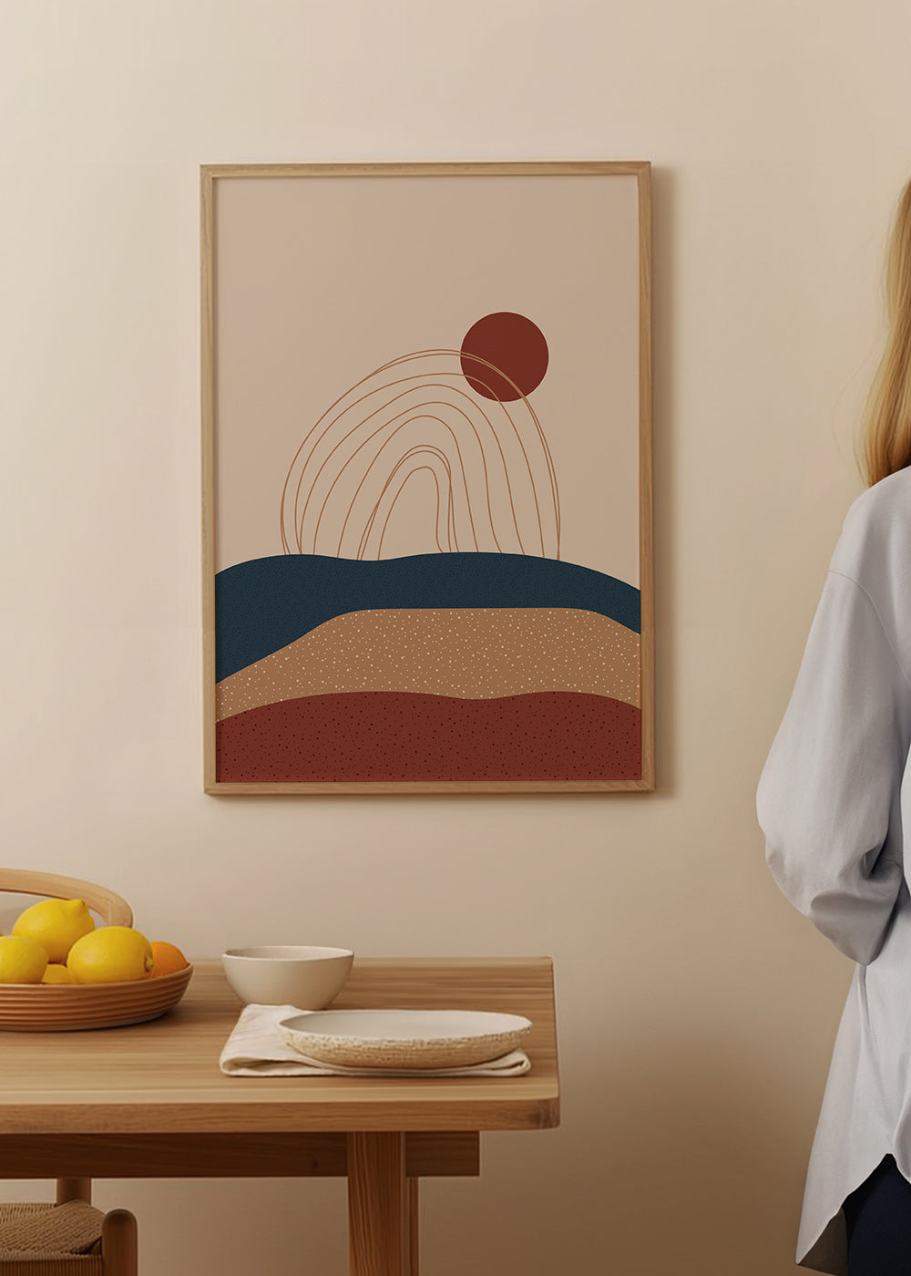A design from our repertoire of sunrise and sunset wall art, by the artist Essentially Nomadic, with red, and to hang in vertical position. The tranquillity and freedom of landscape prints is one of a kind. Bring the walls of your home to life.