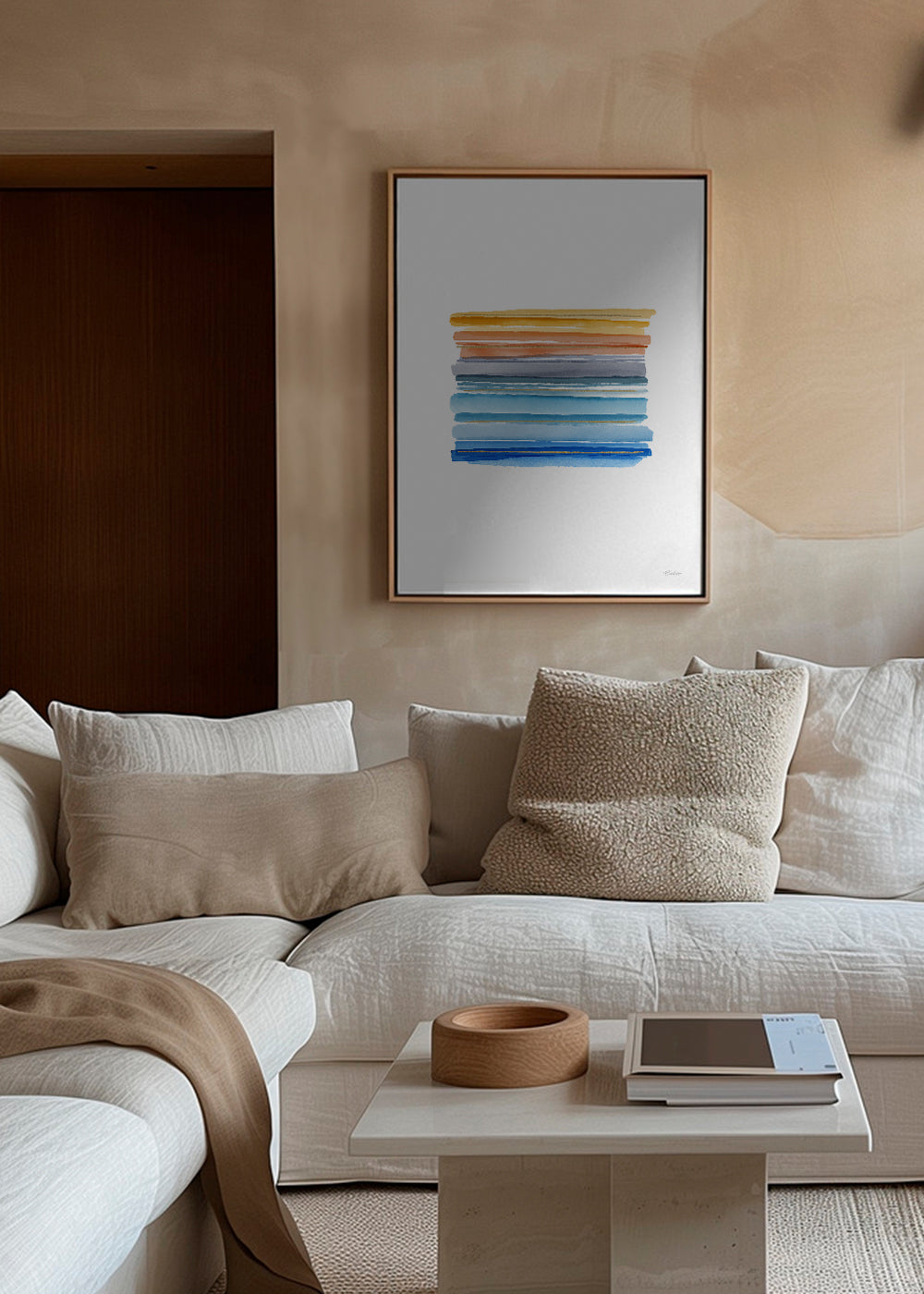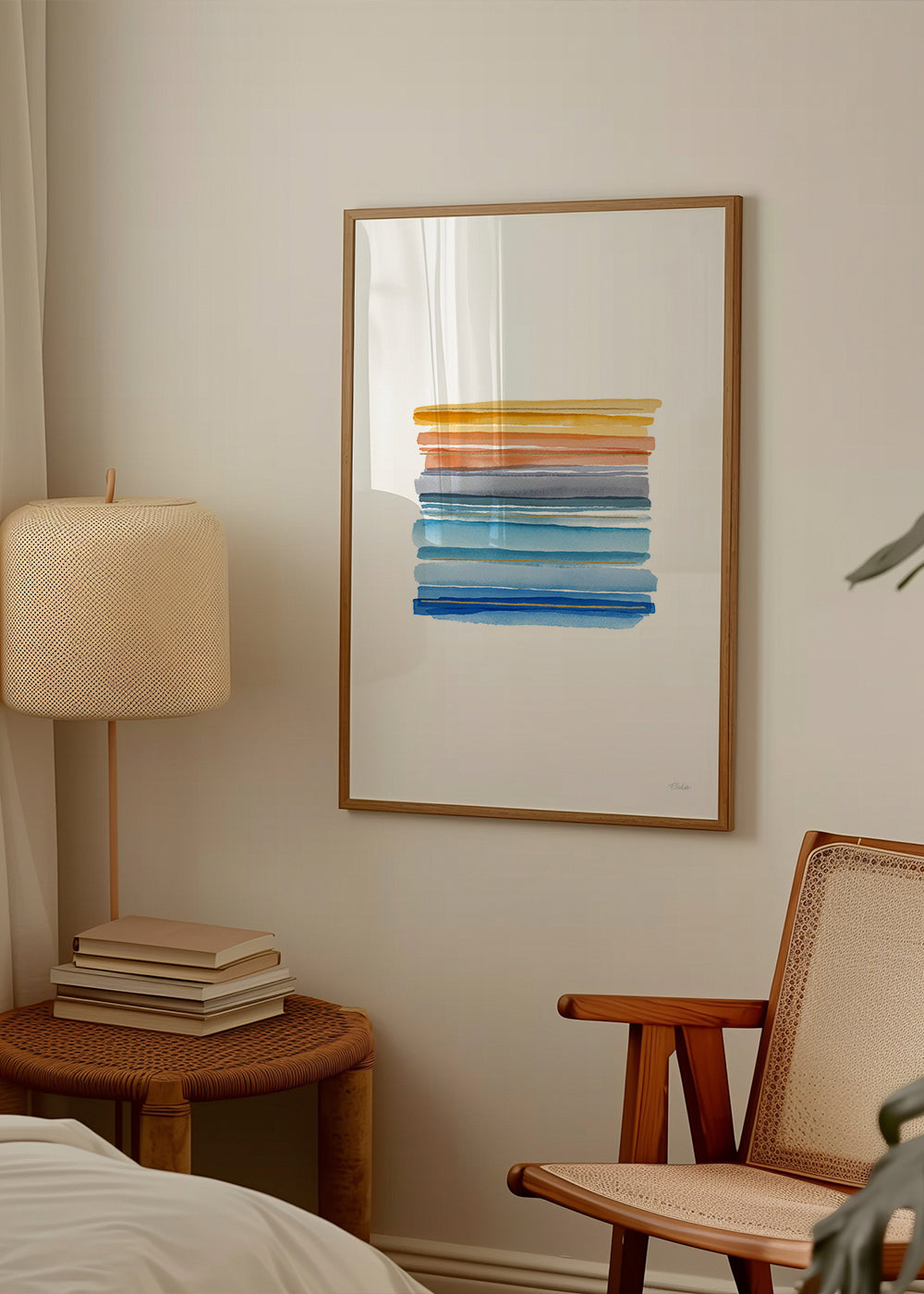 This poster from the geometric wall art and prints collection, created by Fabiana Silveira, in tones of blue, and in vertical position. This piece with abstract shapes is perfect for pairing with other abstract art and geometric prints. A home expresses itself through its walls.