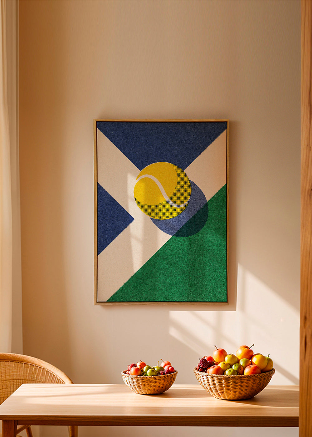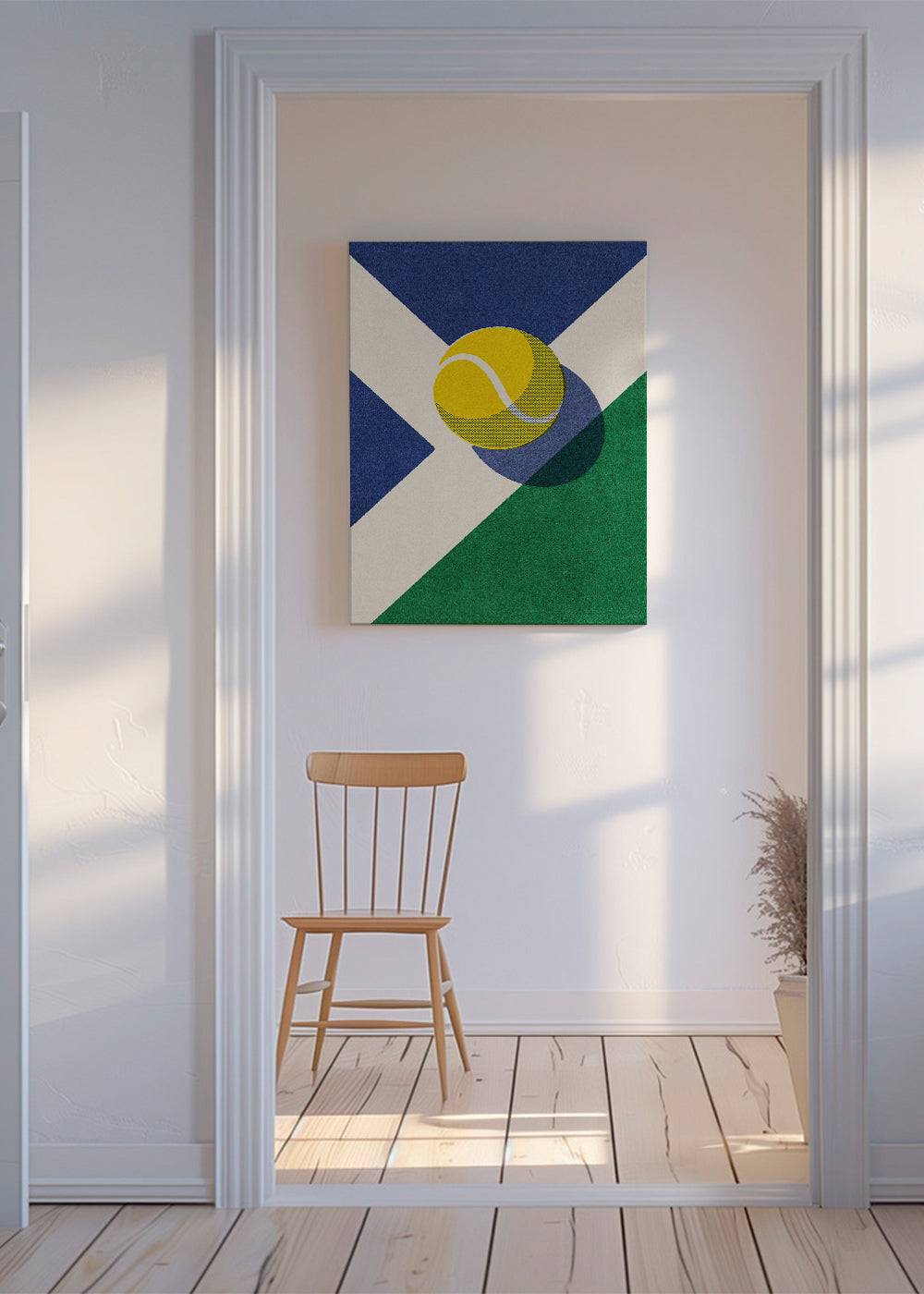 This poster from the tennis wall art category, by creative artist Daniel Coulmann, with tones of blue, and vertical layout. A perfect piece for sport-lovers. Bring out your sporty side with our sports prints. A modern touch for your home.
