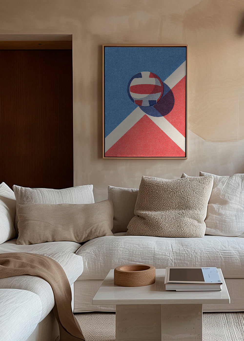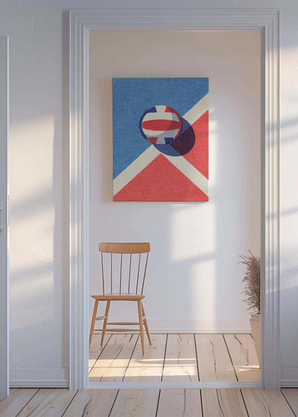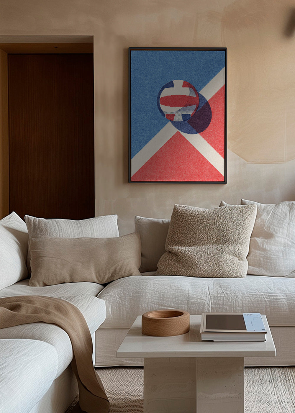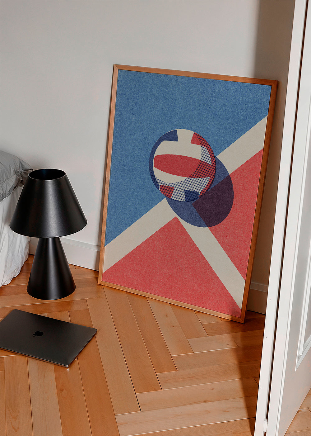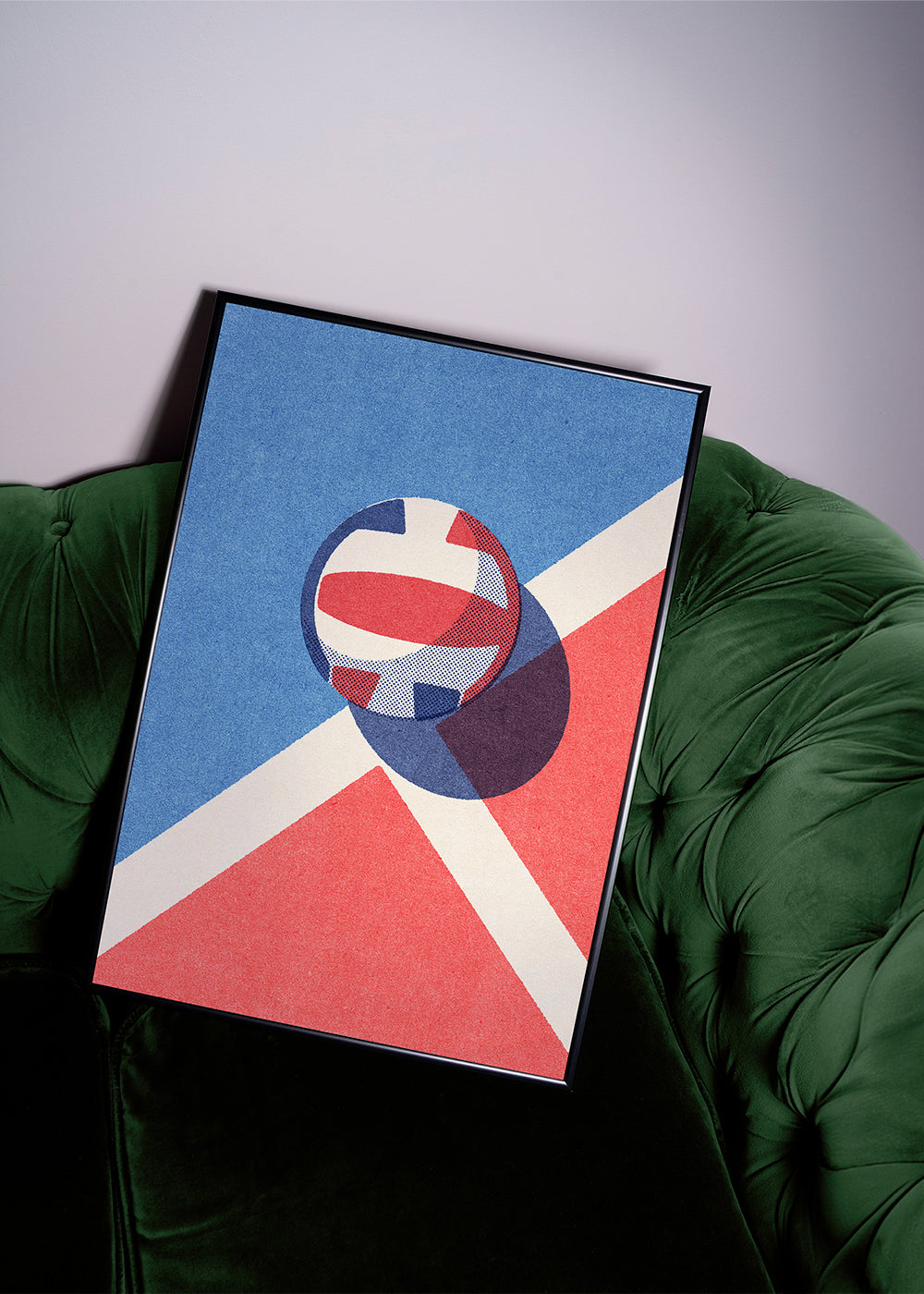 A poster from the sports posters collection, created by Daniel Coulmann, with touches of blue, and facing vertically. A perfect piece for sport-lovers. Bring out your sporty side with our sports prints. Bring the walls of your home to life.
