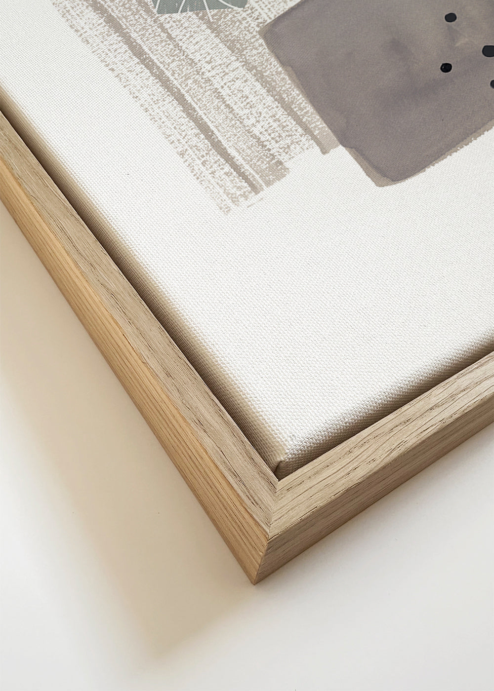 The wooden frames up to 20x28 in (included) have a width of 0.6 in and a depth of 1.2 in, while in the larger ones the width is 0.8 in and a depth of 1.2 in.