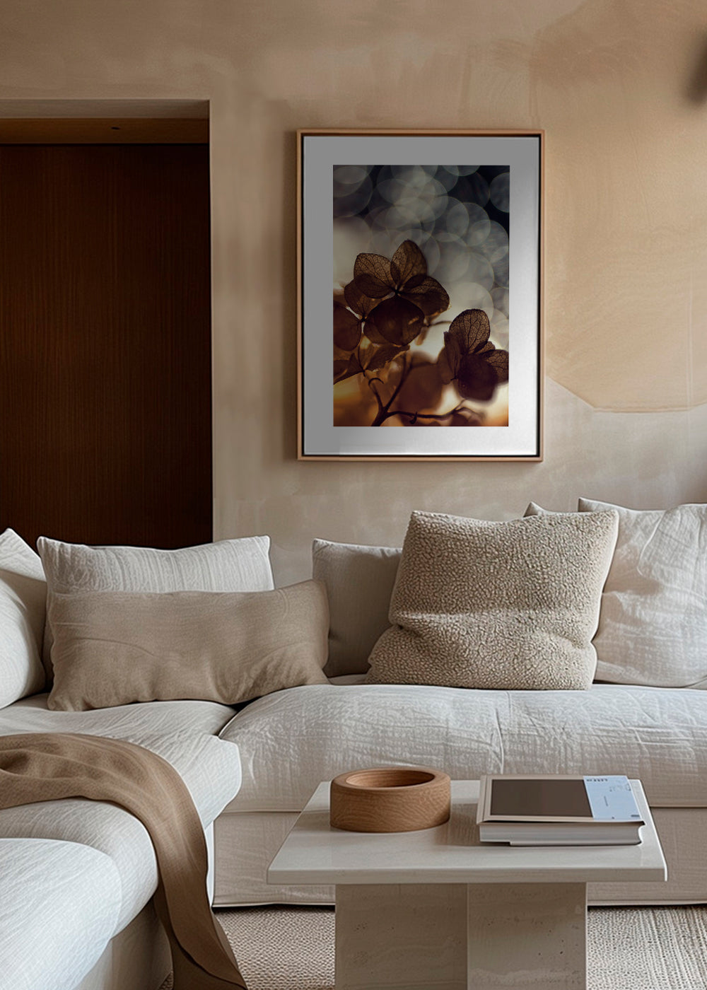 We work with solid wood and aluminium frames. All framed artworks are shipped already assembled and ready to hang. The front protection is made of high-clarity acrylic glass.