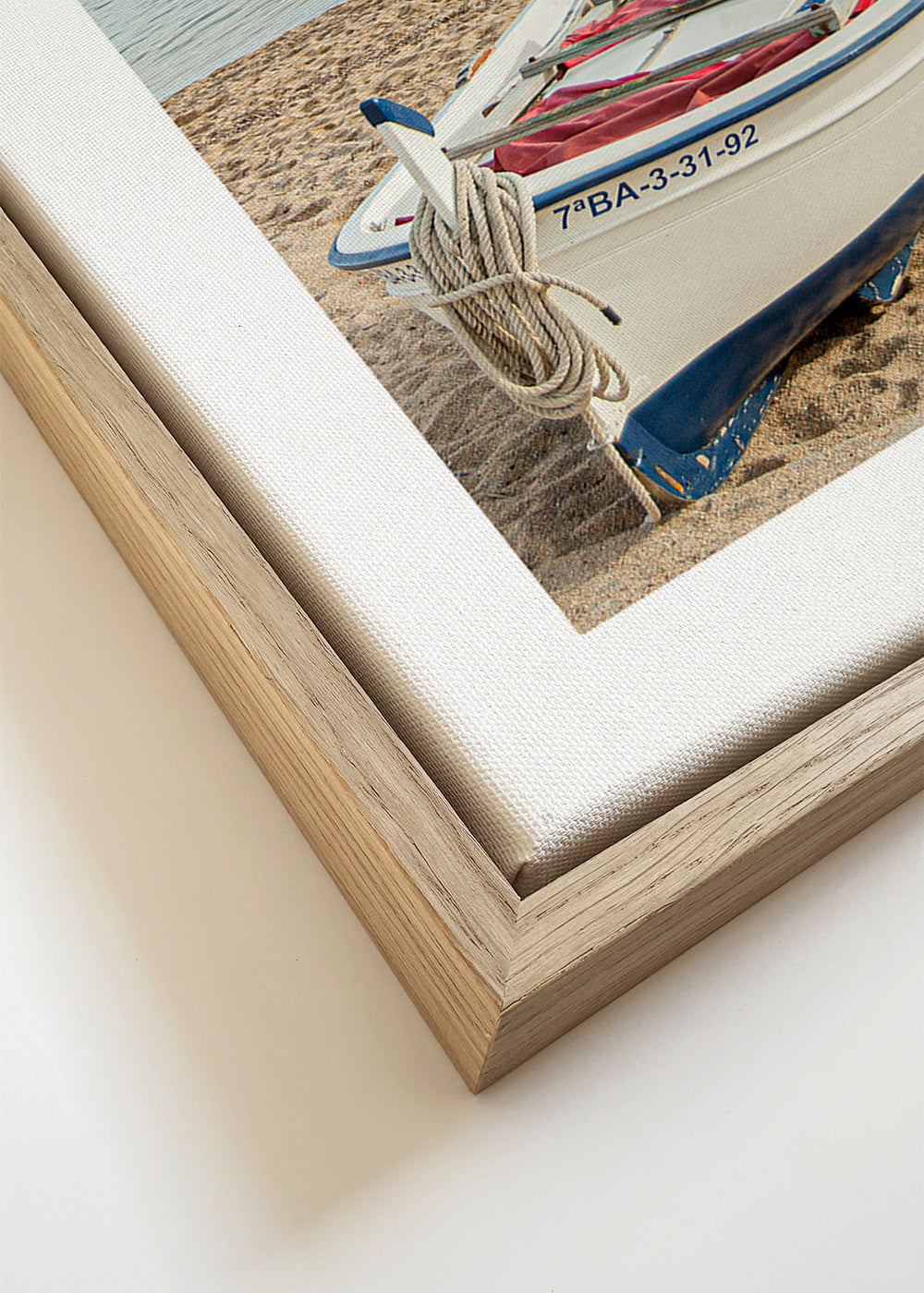 If you select the passepartout option, we will add the white matt board to the frame, and we will reduce the design of the work. For example, if you select a print size 20x28 in, with an oak colored frame and passepartout, we will reduce the design of the print to the previous size (16x20 in). In this way, it will adapt perfectly to the inside window of the passepartout.