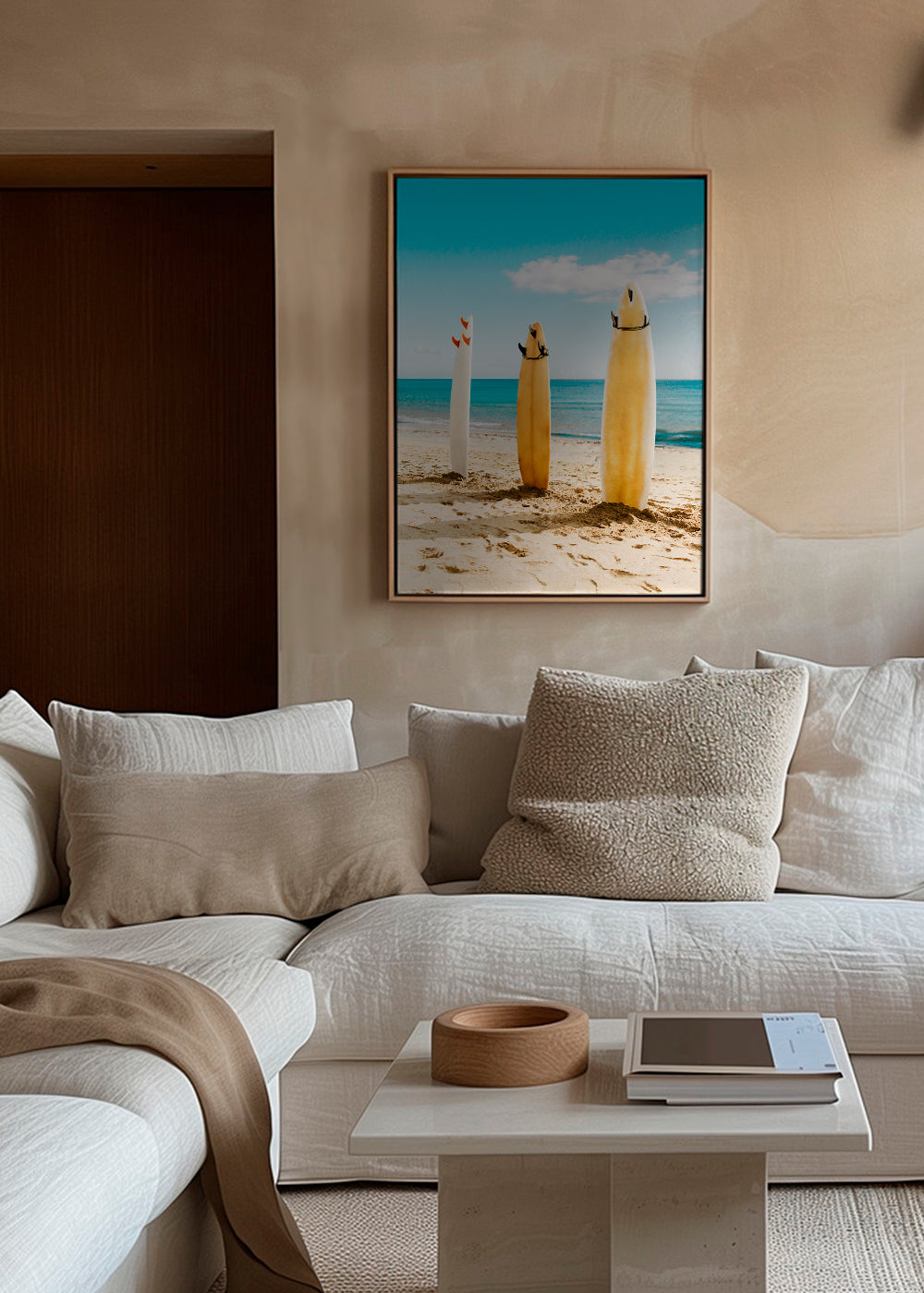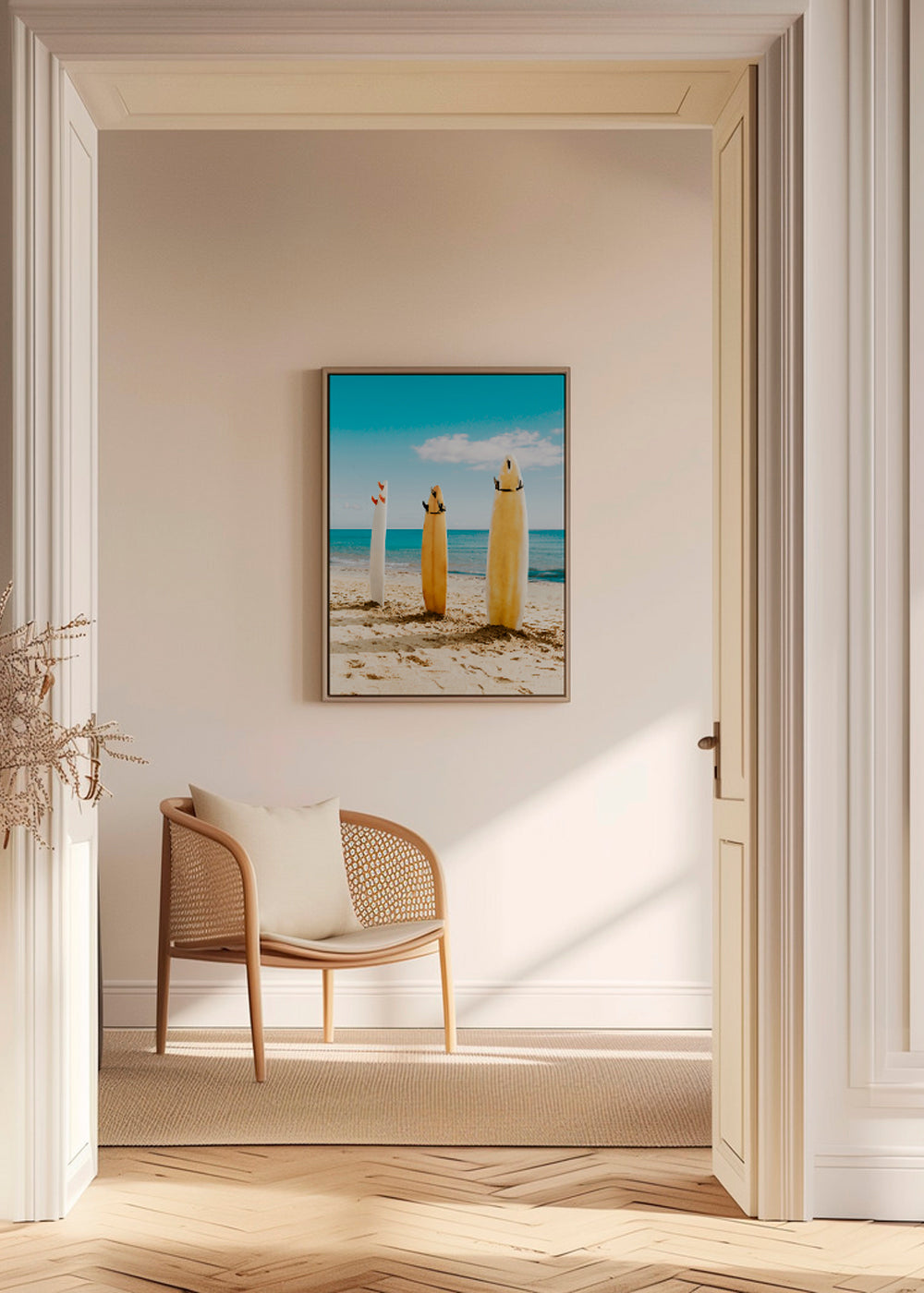 This piece from our surf posters and wall art collection, from the Gal Design collection, with yellow tones, and in vertical position. Nature in all its splendour, landscape prints convey a sense of calm. Create your favourite spot.