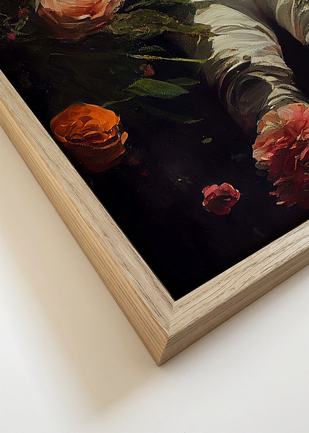 We work with solid wood and aluminium frames. All framed artworks are shipped already assembled and ready to hang. The front protection is made of high-clarity acrylic glass.